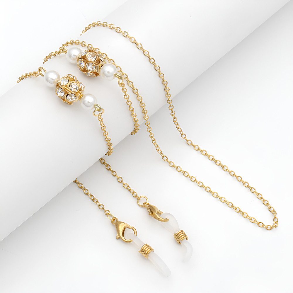 • Diese Brillenketten werden an verschiedenen kleinen Objekten, wie Strasssteinen und kleinen Metallperlen, mit einem schönen Design befestigt.