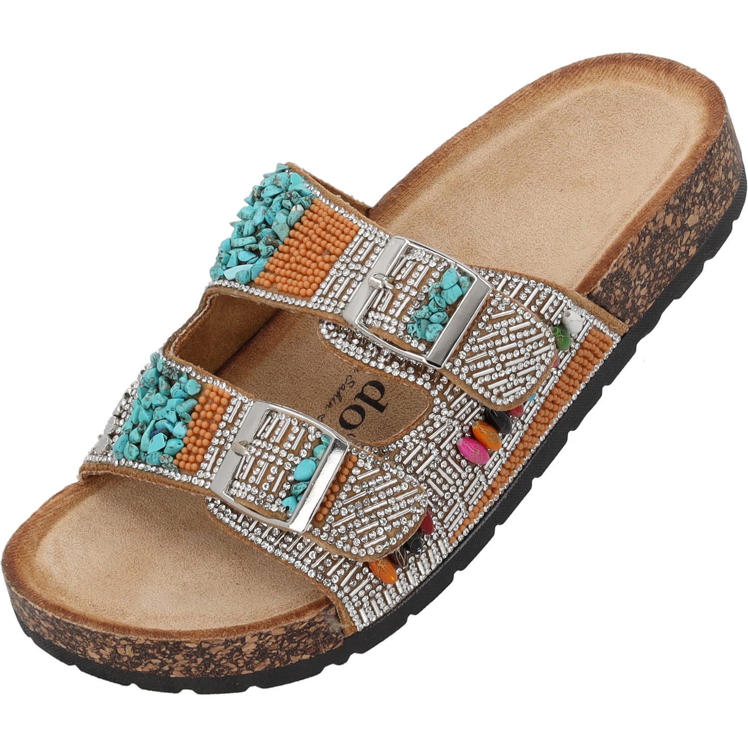 Der „Palado Viha“, Teil der exklusiven Palado by Sila Sahin Kollektion, vereint Stil mit Komfort. Mit zwei Riemen, Veloursleder-Decksohle und langlebiger Gummi-/Synthetiksohle bietet er festen Halt und Bequemlichkeit. Die eingearbeiteten Perlen und das gemusterte Design machen ihn zum Hingucker für modebewusste Auftritte.