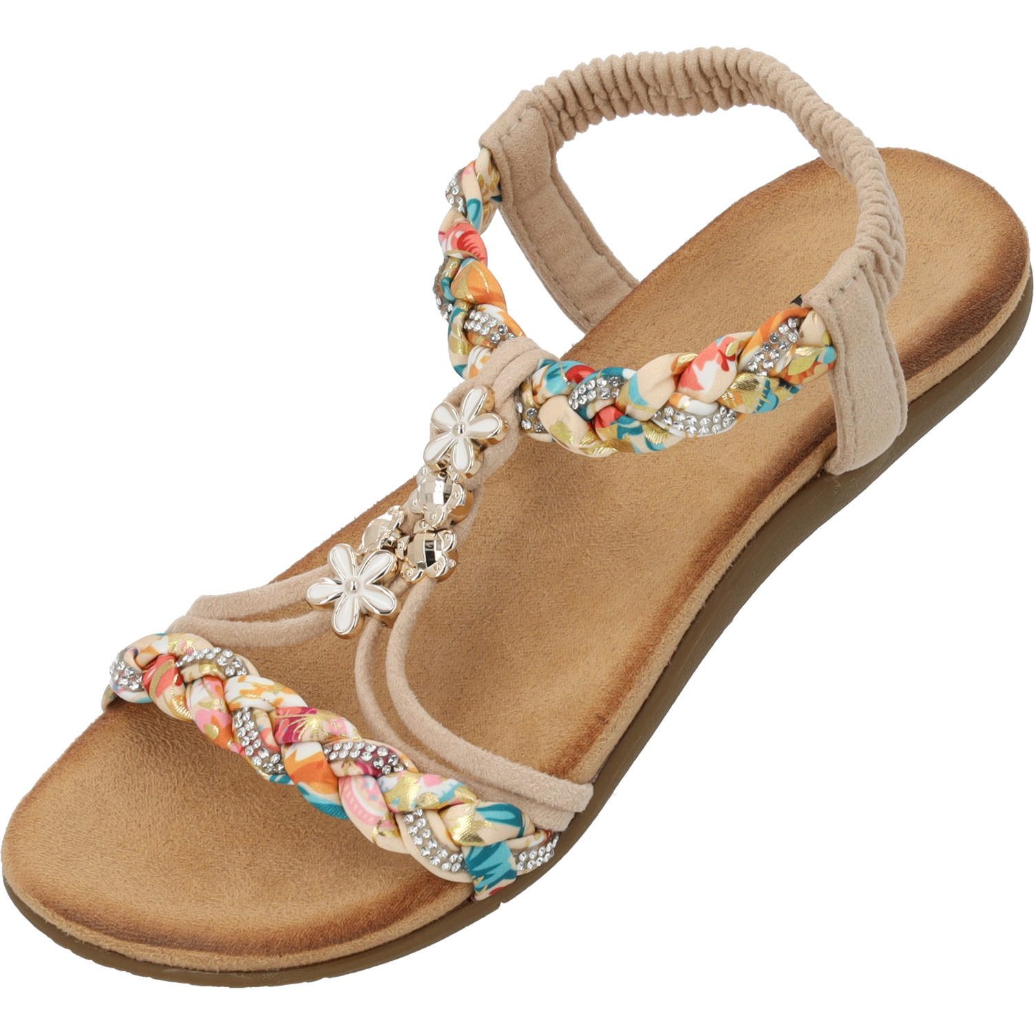 Verspielt, feminin und einfach bezaubernd – der ‘Palado Ninralla‘ bringt Urlaubsgefühle in deinen Alltag. Geflochtene Riemen mit bunten Akzenten treffen auf sanft schimmernde Blüten-Details, die jeden Schritt zu etwas Besonderem machen. Die weich gepolsterte Sohle umschmeichelt deine Füße und schenkt dir das Gefühl, barfuß über warmen Sand zu laufen. Ein elastischer Fersenriemen sorgt für perfekten Halt, während die leichte Laufsohle dich mühelos durch den Tag trägt.