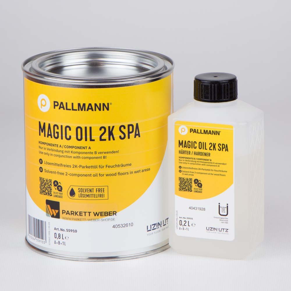 Pallmann Magic Oil 2K SPA ist eine Öl-Wachs-Kombination, die eine offenporige, atmungsaktive und diffusionsfähige Oberfläche ergibt. Durch den Wachsanteil wird eine gleichmäßig matte, samtartige Oberfläche erzielt. Mit Magic Oil 2K SPA erreicht man durch den hohen Härteranteil eine sehr hohe Vernetzungsdichte, deshalb ideal geeignet für Parkettböden in Feuchträumen z.B. Bade-, Wellness- und Fitnessräumen. Diese rasche Trocknung ermöglicht in kürzester Zeit Renovierungen durchzuführen, ohne Einschränkung der mechanischen und chemischen Belastbarkeit nach Trocknung über Nacht. Die sehr hohe Vernetzungsdichte ergibt eine sehr wasserbeständige und schmutzabweisende Oberfläche, die durch einkomponentige Parkettöle nicht erreicht wird.