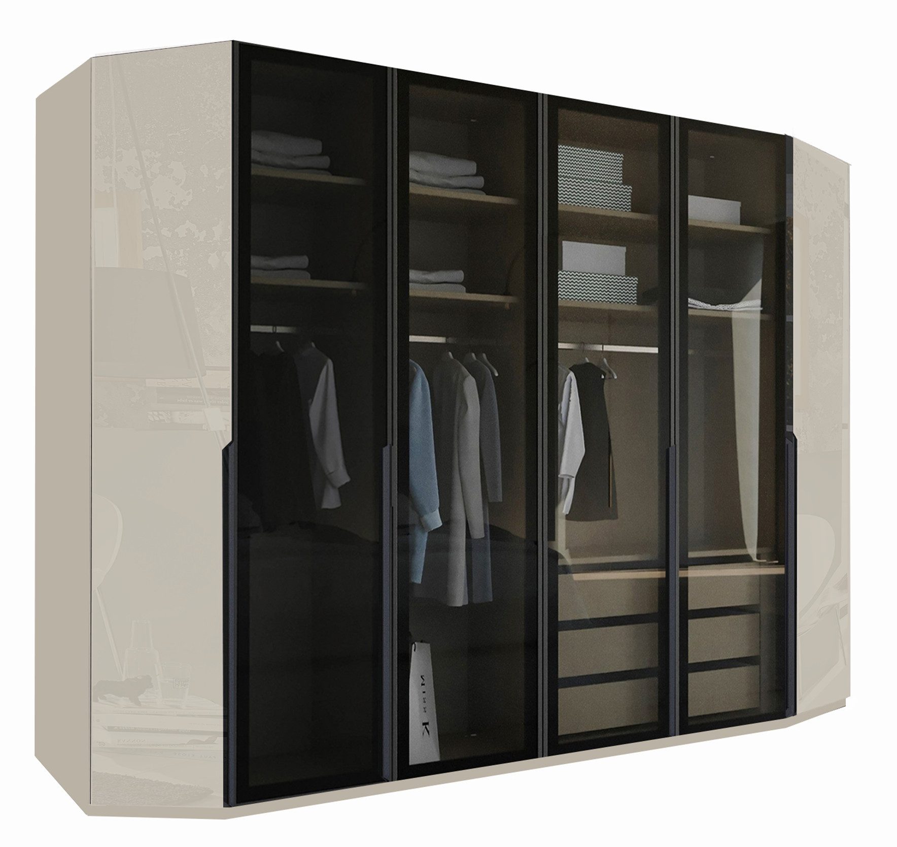 Ausstattung | Soft-Close-Funktion Türen mit Soft-Close-Funktion Transparente Glastüren Schubkasten mit gedämpftem Selbsteinzug LED-Lichtsystem im Innenbereich |