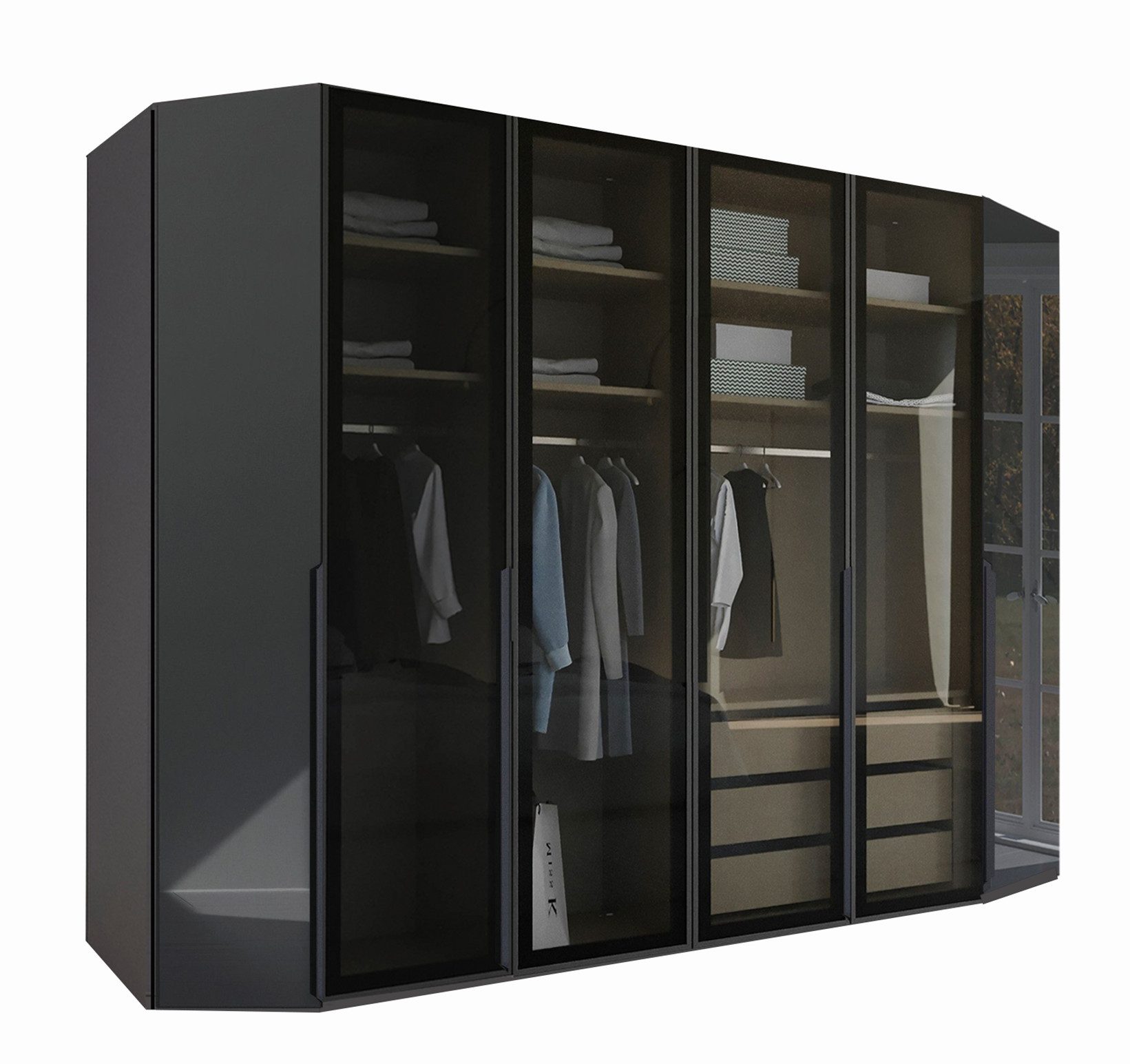 Wissenswertes | Material Beschläge: Metall/Kunst, inkl. Schubkastenvarianten wählbar, inkl. Wäscheeinteilung mit 2 Einlegeböden und 1 Kleiderstange, inkl. LED-Innenbeleuchtung, inkl. Türdämpfer. |