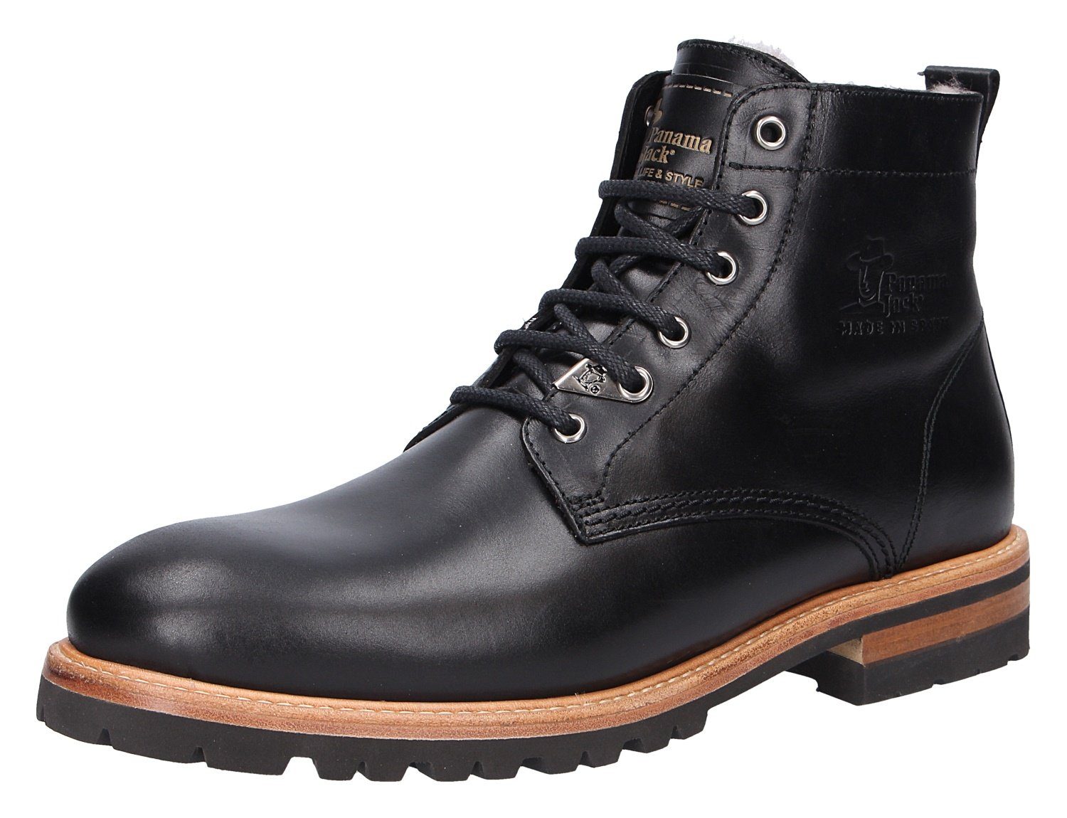 Sportiver Herrenboot mit Warmfutter aus dem Hause Panama Jack aus einem feinen hochwertigem Glattleder.Dieses Leder verleiht einen edlen Look und ist gut zu pflegen. Einen angenehm warmen Fuß verspricht die hochwertige Innenausstattung aus echtem Lammfell. Die Innensohle ist fest mit dem Schuh verbunden. Geschnitten ist die Form für normal breite Füße (Weite F). Der stabile Blockabsatz hat eine Höhe von cirka 1 cm ,für gute Bodenhaftung sorgt die abriebfeste und griffige Gummisohle. Eine praktische Schnürung vollendet den klassischen Look und erleichtert Ihnen den Einstieg. Die medium Schaftweite passt sehr gut für alle normalweiten Waden. Durch die runde Schuhspitze wirkt der Schuh dezent am Fuß und bietet genügend Platz für die Fußzehen. Die Размер обуви fällt regulär aus.