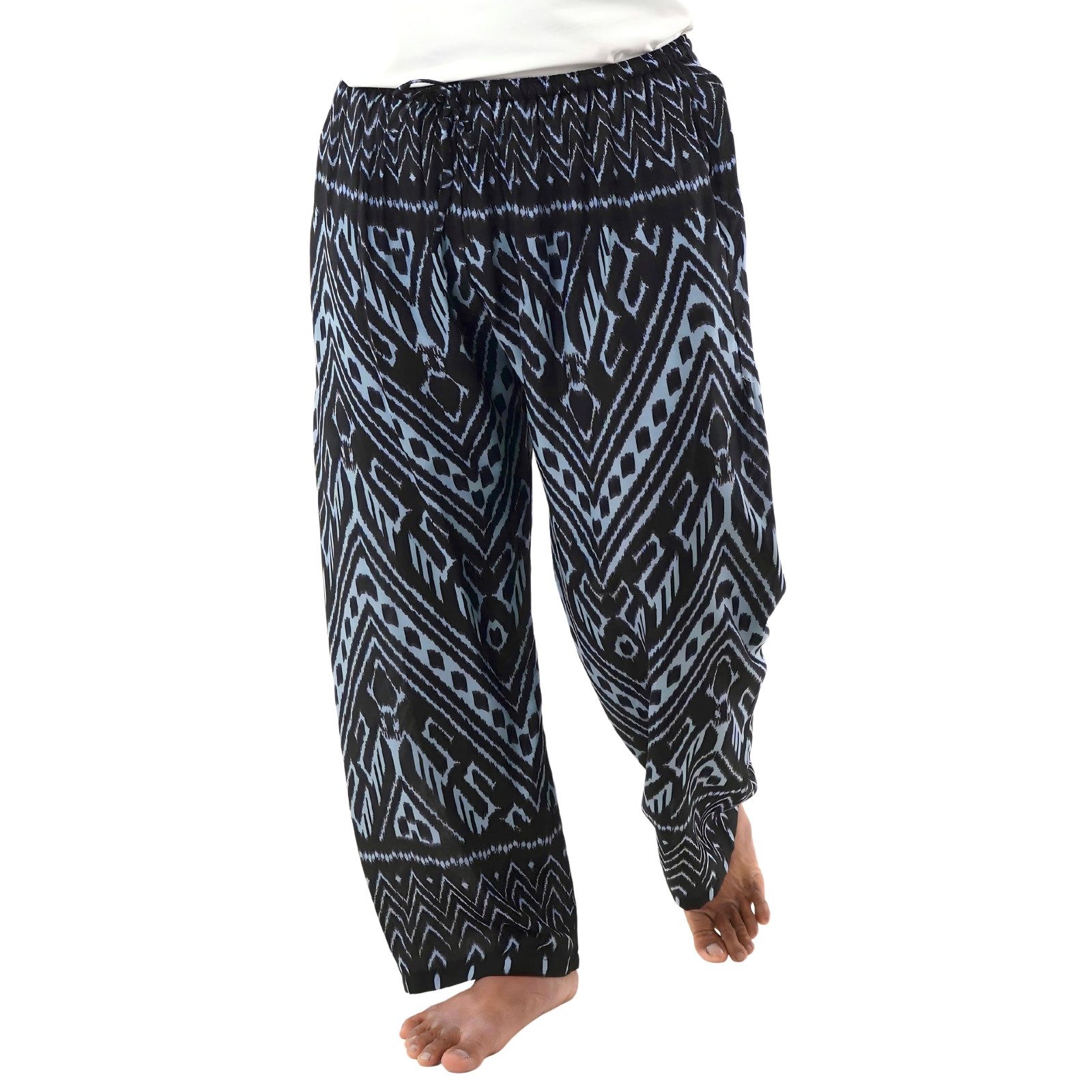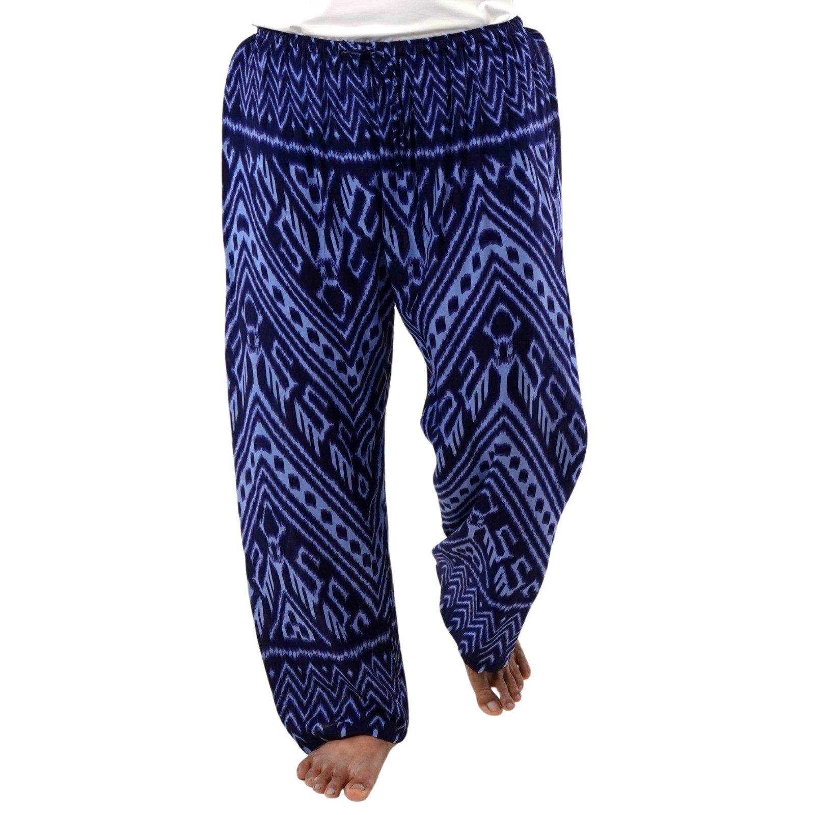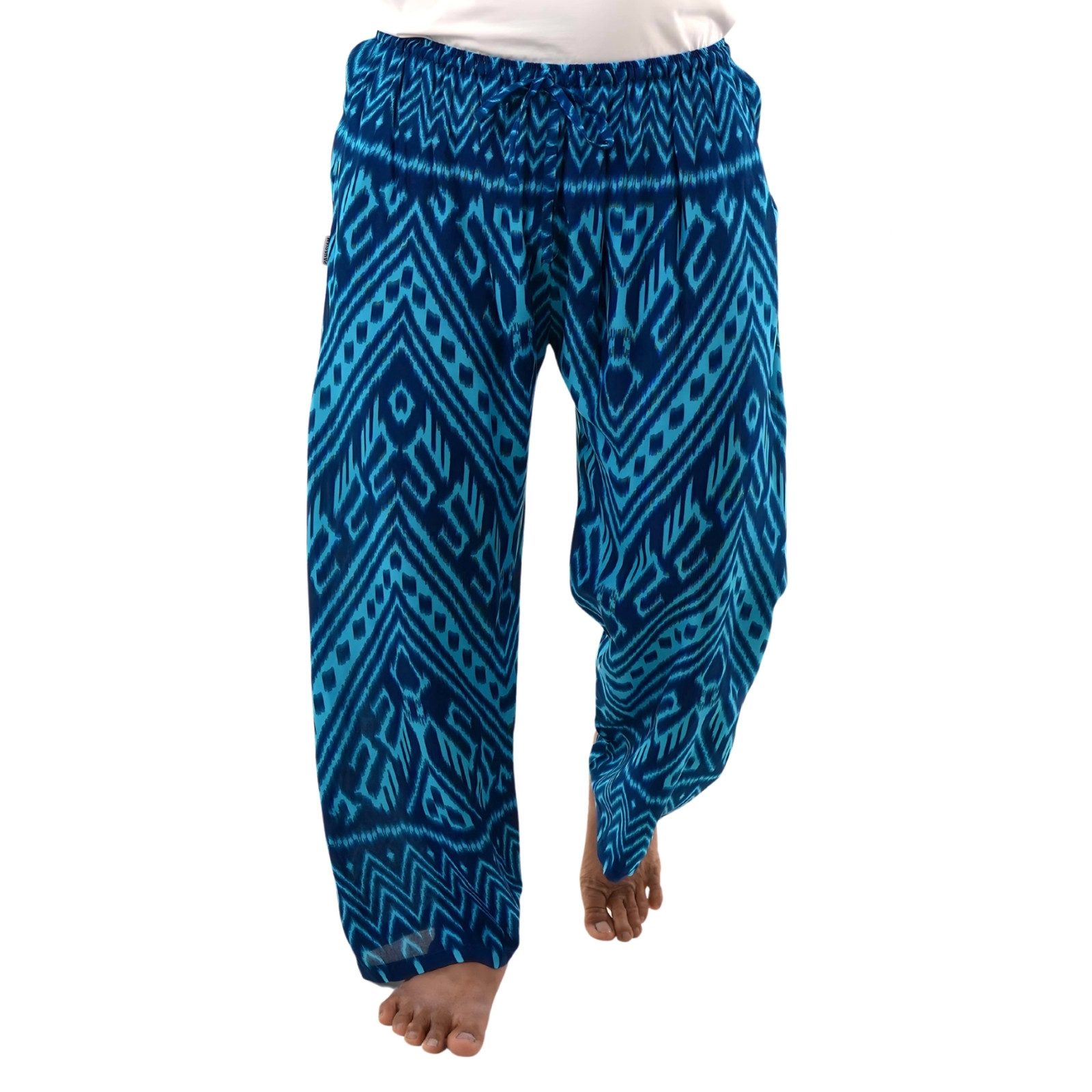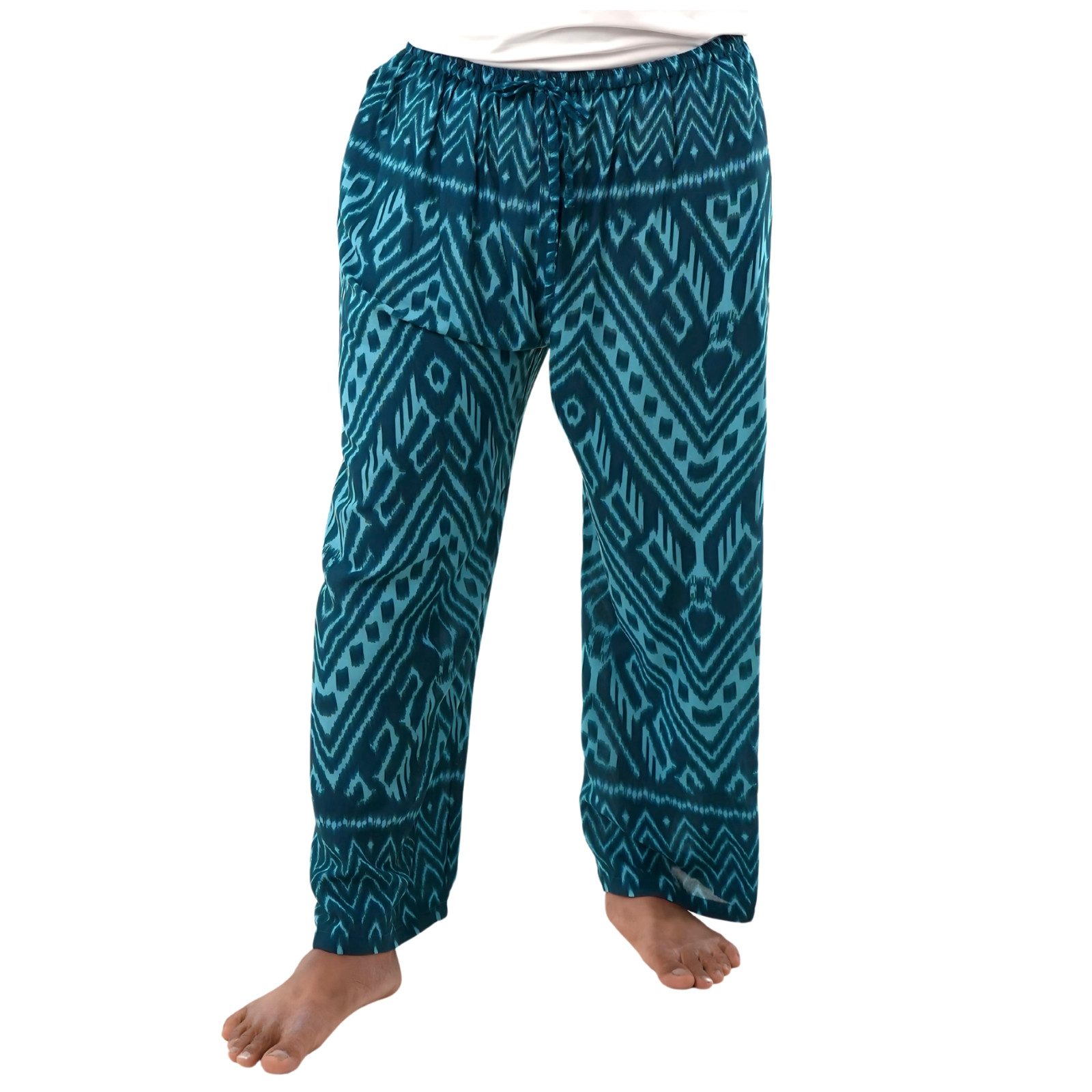 Lass Dich von dem Komfort unserer Relaxhose im einzigartigen Ikat-Muster verzaubern. Hergestellt in liebevoller Handarbeit aus weicher Viskose, bietet die Loungehose maximale Bewegungsfreiheit und ein Gefühl von Leichtigkeit. Der elastische Bund und der lockere Schnitt machen sie zur idealen Wahl für entspannte Abende zu Hause, Thai Chi, Retreats oder Freizeitaktivitäten und bieten auch als Wellness- und Spa-Hose ein unvergleichliches Wohlgefühl in Momenten der Erholung.