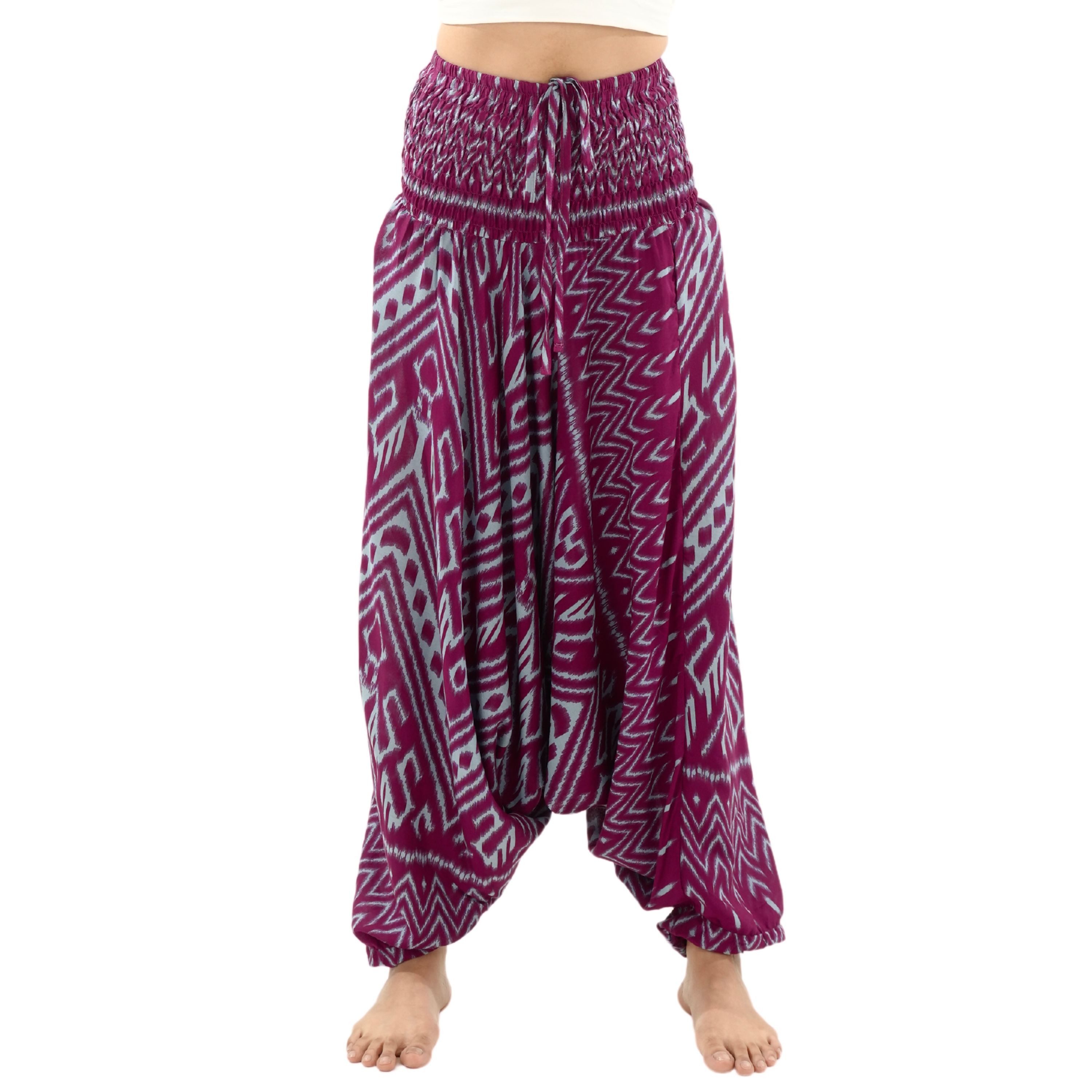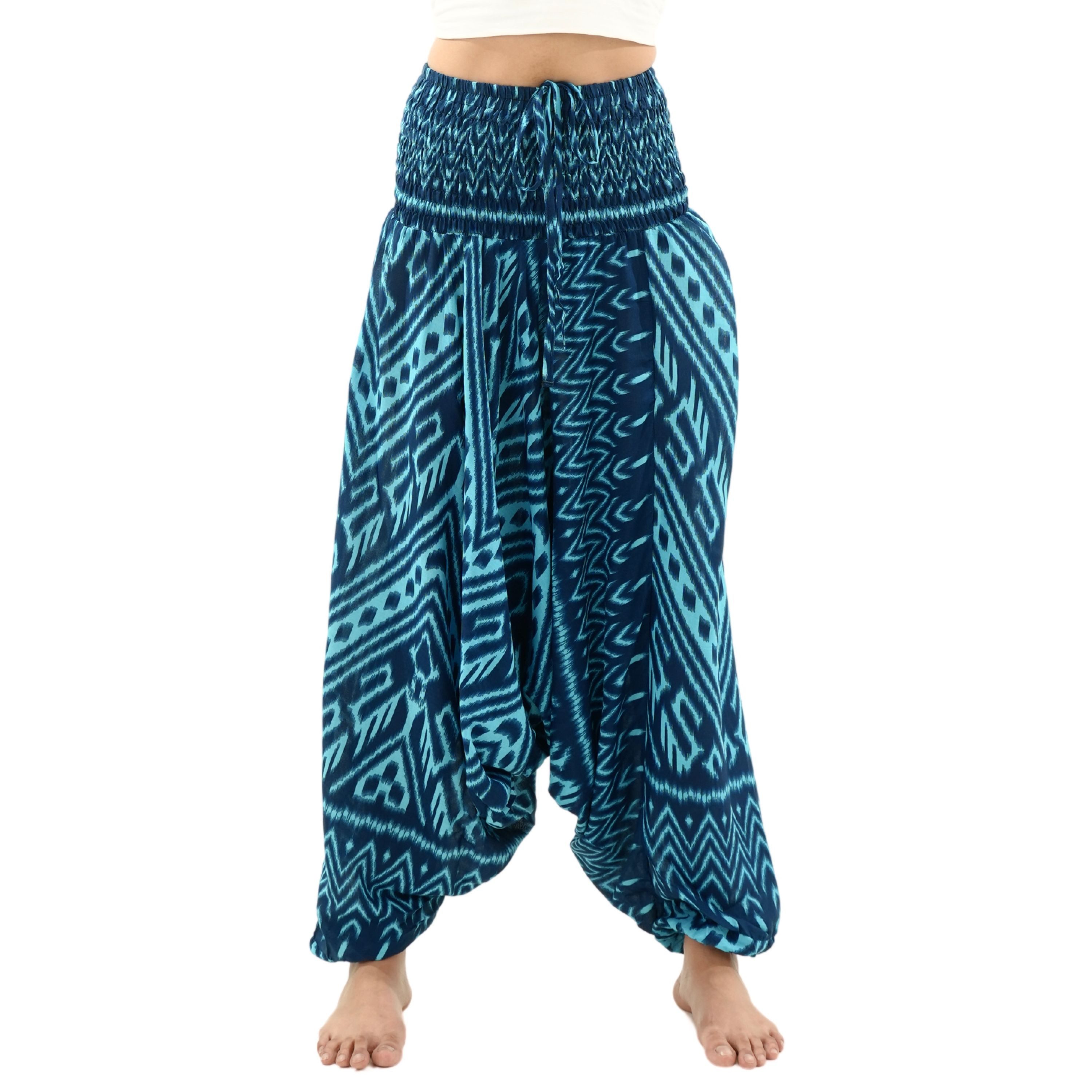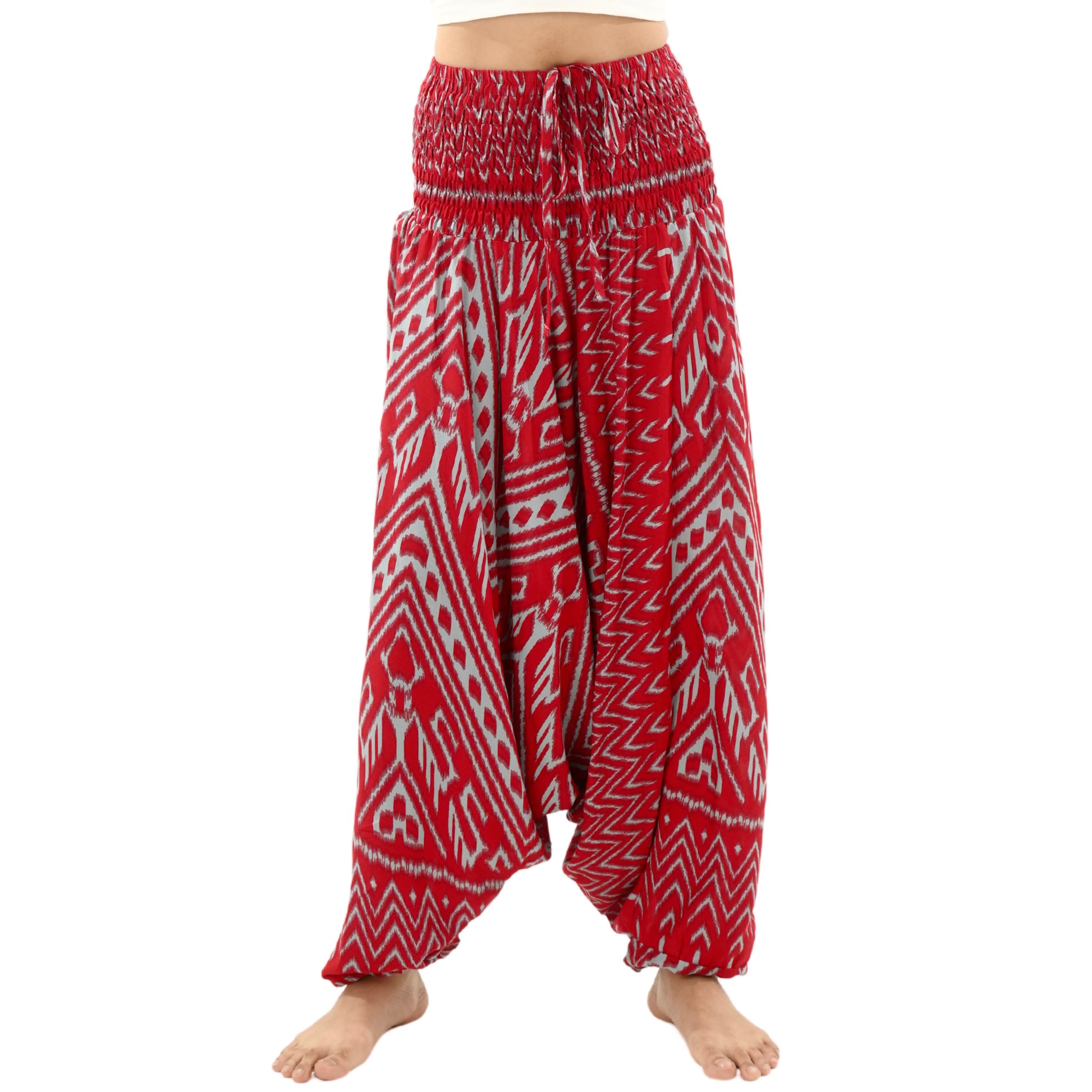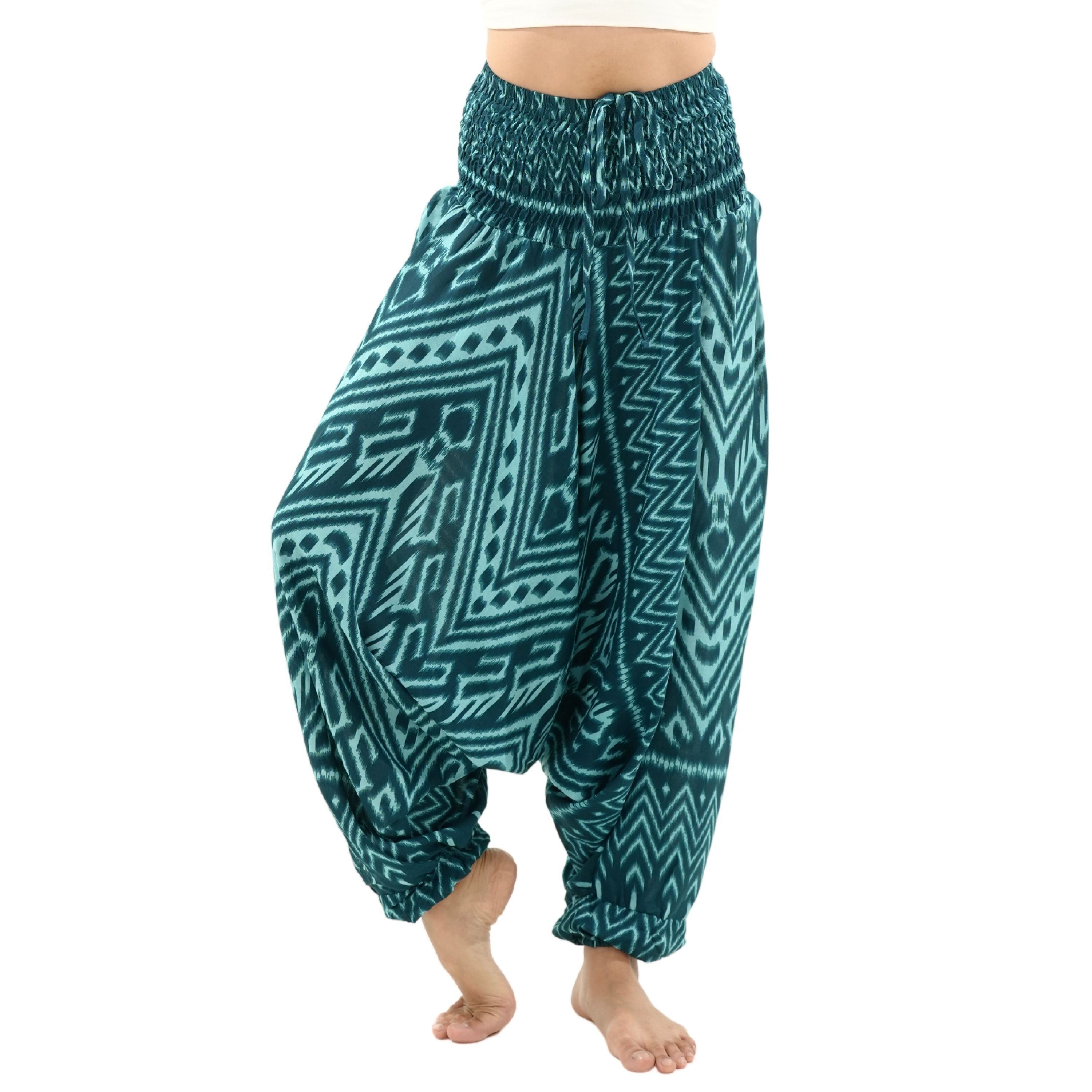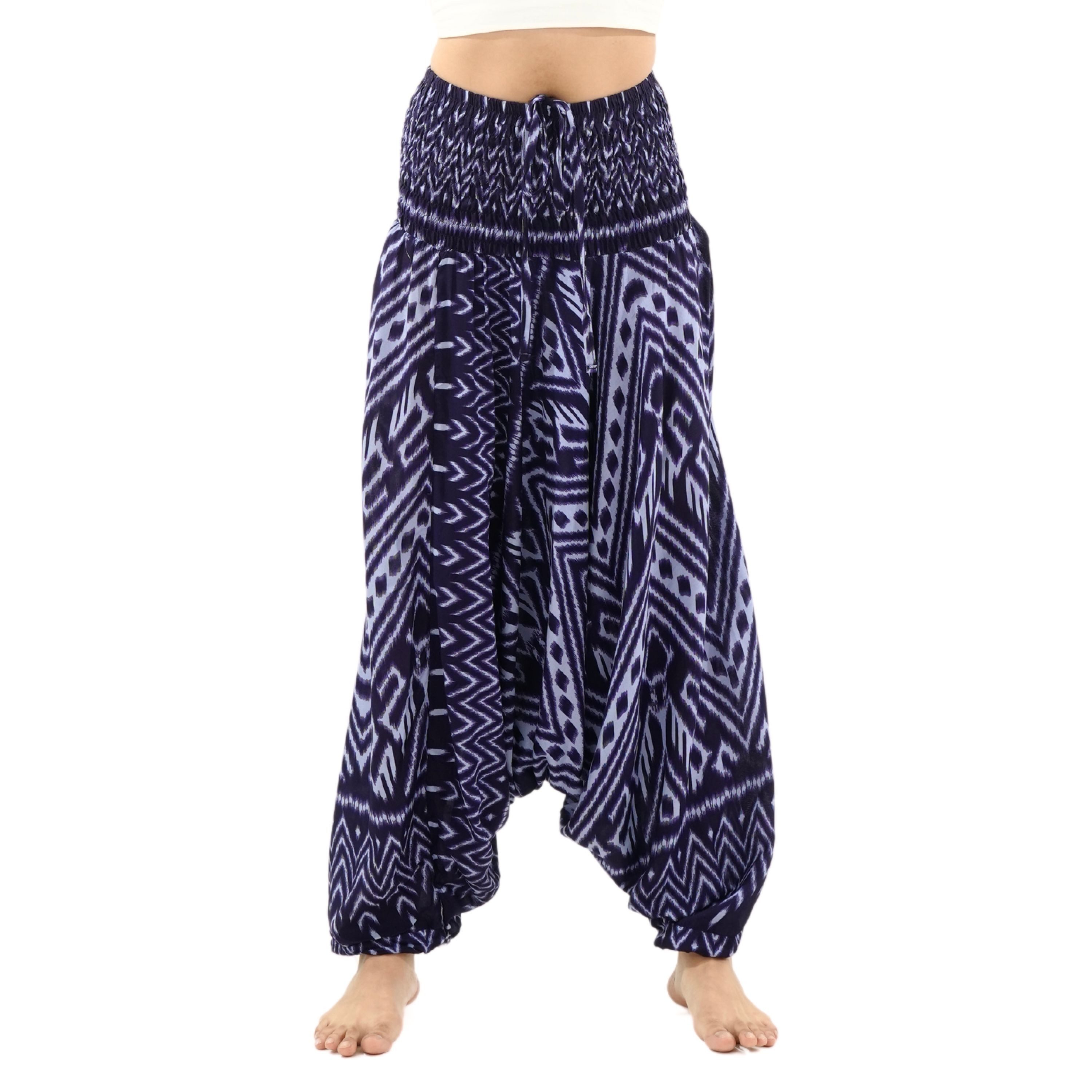 Unsere Unisex-Aladinhose kombiniert ultimativen Komfort mit stilvollem Design. Der weite Schnitt sorgt für ein unvergleichlich bequemes Tragegefühl, ideal für entspannte Urlaube oder gemütliche Stunden zu Hause. Das einzigartige Ikat-Muster und die weiten Beine der Boho-Hose bieten eine lockere Passform und maximale Bewegungsfreiheit. Diese luftige Goa-Hose ist der perfekte Begleiter für Retreats, Seminare, Tai Chi, Pilates, Meditation, Festivals oder einfach als bequeme Loungewear im Alltag.