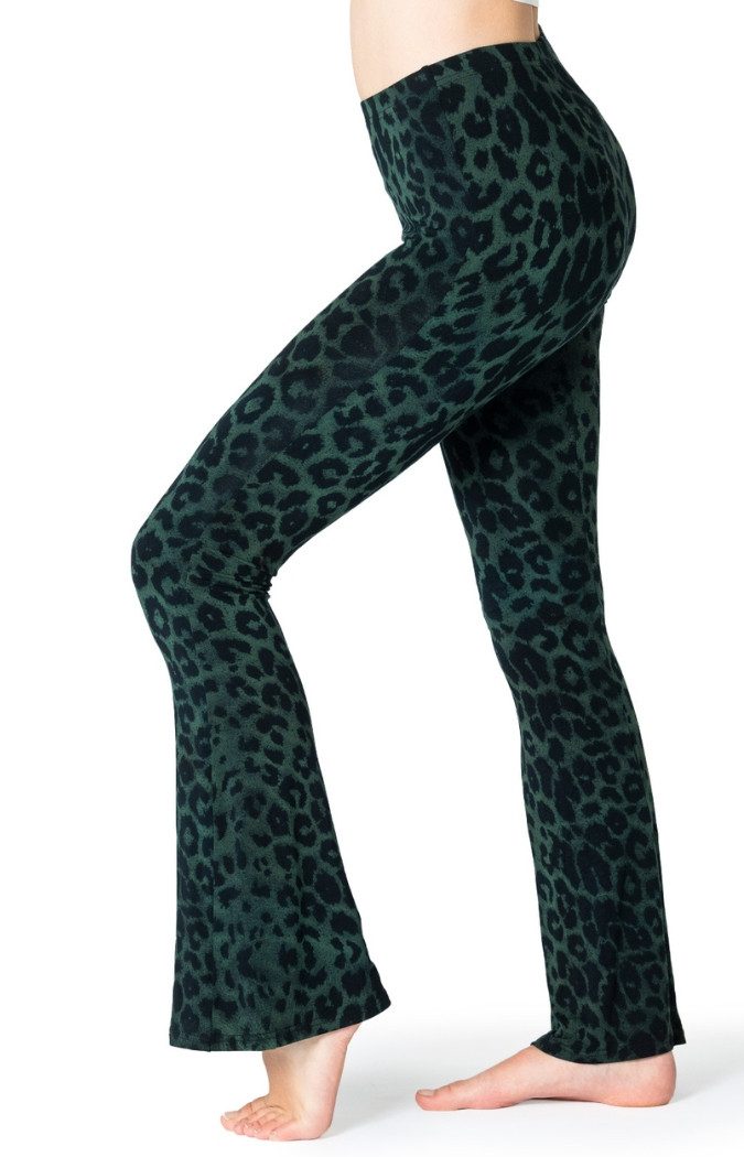 Verleihe Deinem Look mit unseren handgefertigten Batik Schlagleggings mit einzigartigem Leopardenmuster eine stylische Note. Die ausgestellte Flare Leggings mit weitem Bein bietet angenehmen Tragekomfort für Yoga, Fitness, Ecstatic Dance oder den Alltag. Der hochwertige Stoff und der bequeme Gummibund sorgen für eine ideale Passform und perfekten Halt, während das moderne Bootcut-Design den Look stilvoll abrundet.