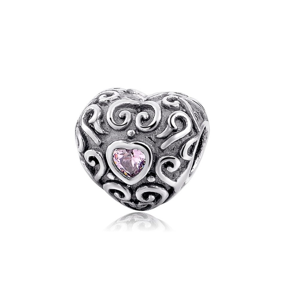 Herrlich verziert passt dieser Charm sowohl zu anderen reich verzierten Elementen, als auch zu Glas Charms in der Farbe pink. Ein Herz das Du Dir auch selber schenken kannst um immer an einen lieben Menschen zu denken.