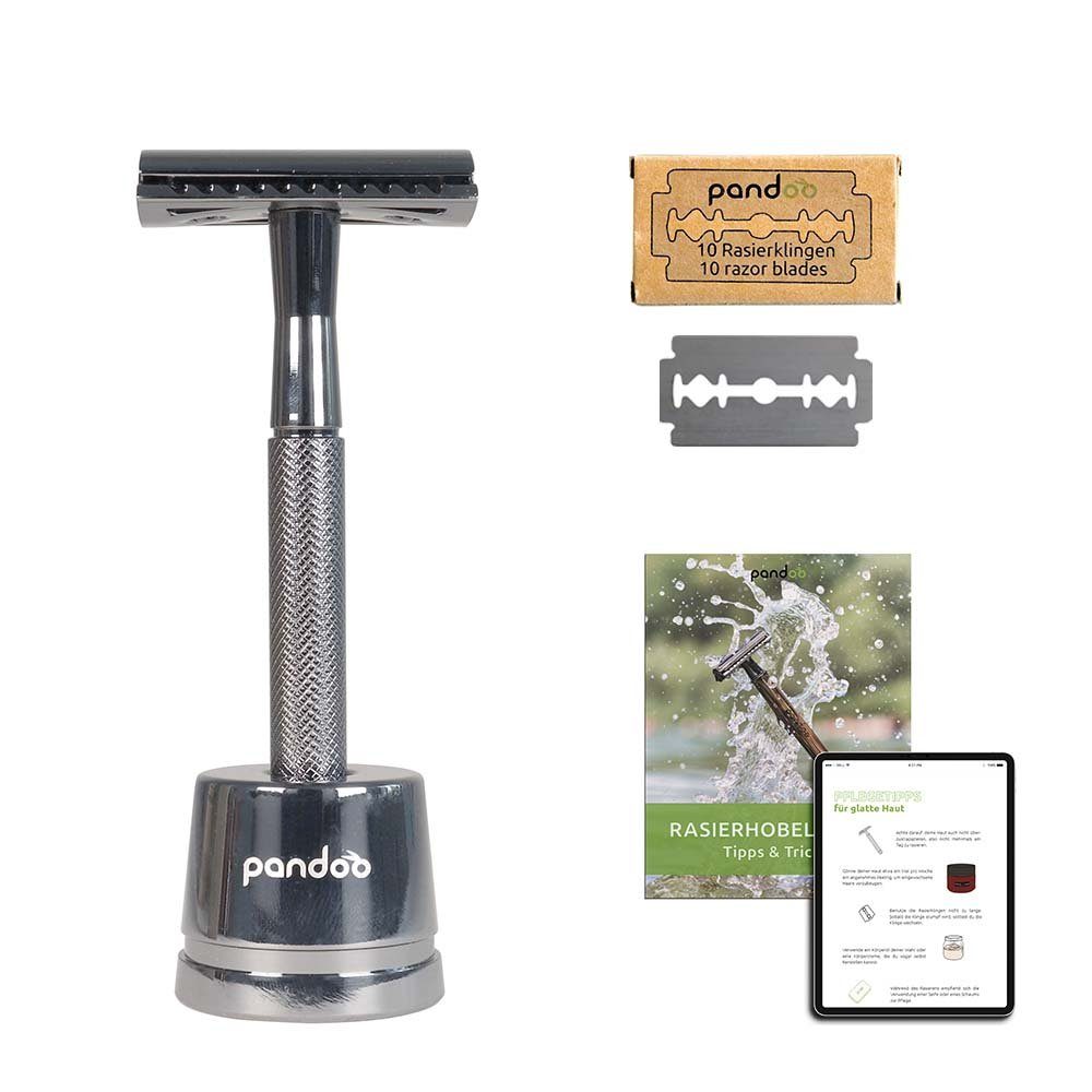 Lieferumfang | Metall Rasierhobel, Halterung, 10 Rasierklingen, E-Book "Rasierhobel Guide" |