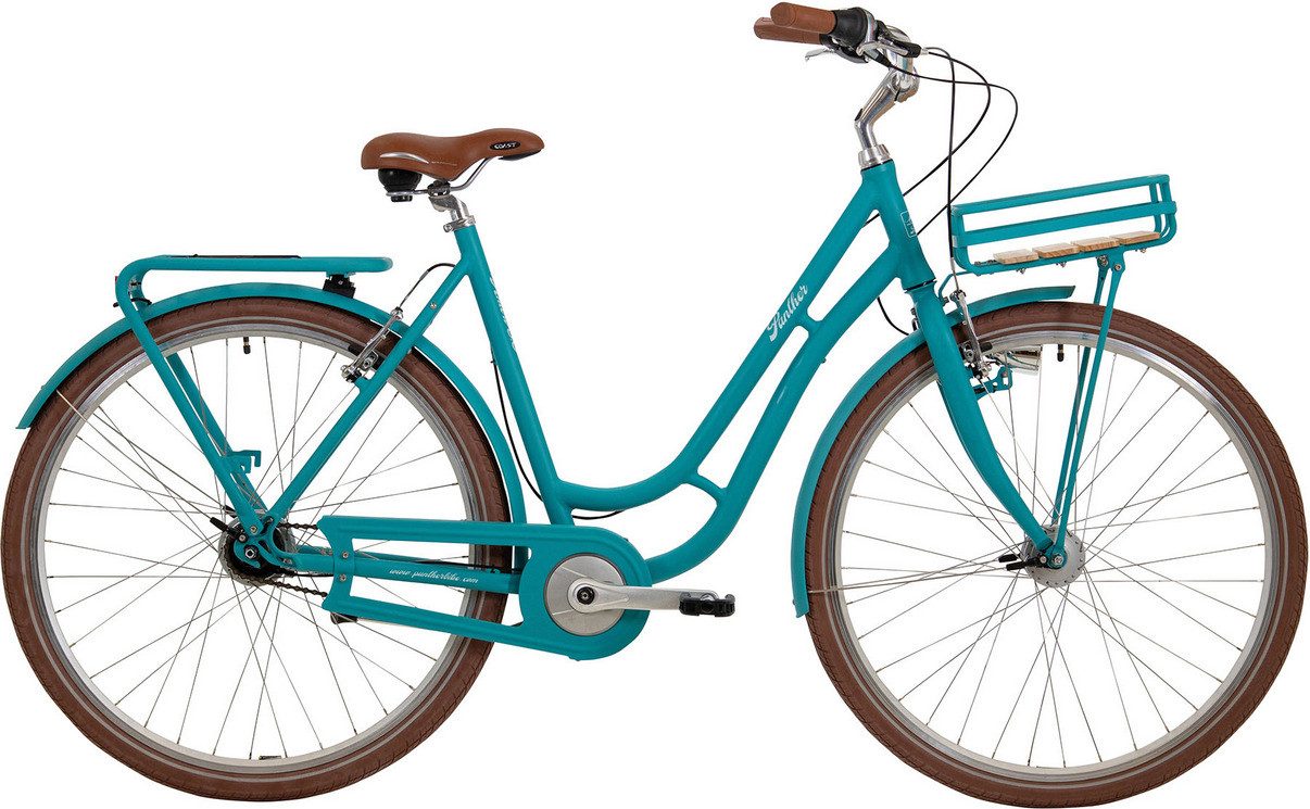 Perfekt für den Weg in die City oder den Weg zur Arbeit, das Panther Tourenrad Antero überzeugt nicht nur durch die schicke Optik, sondern auch durch die hochwertigen Komponenten.. Der geschwungene Rahmen in den leuchtenden Farben wirkt in Kombination mit den farblich abgestimmten Bauteilen und dem vorderen Holzträger besonders edel. Dank der wartungsarmen 8-Gang Nabenschaltung von Shimano kommt man immer zügig und bequem ans Ziel. Die helle LED-Beleuchtung sorgt für gute Sichtbarkeit auch in der Dunkelheit und die V-Brake sowie die Rücktrittbremse sorgen für eine optimale Bremsleistung, selbst bei nassem Untergrund oder unebenen Gelände. Der bequeme Sattel, Schutzbleche, Seitenständer und der Gepäckträger runden die Ausstattung des Fahrrades ab.