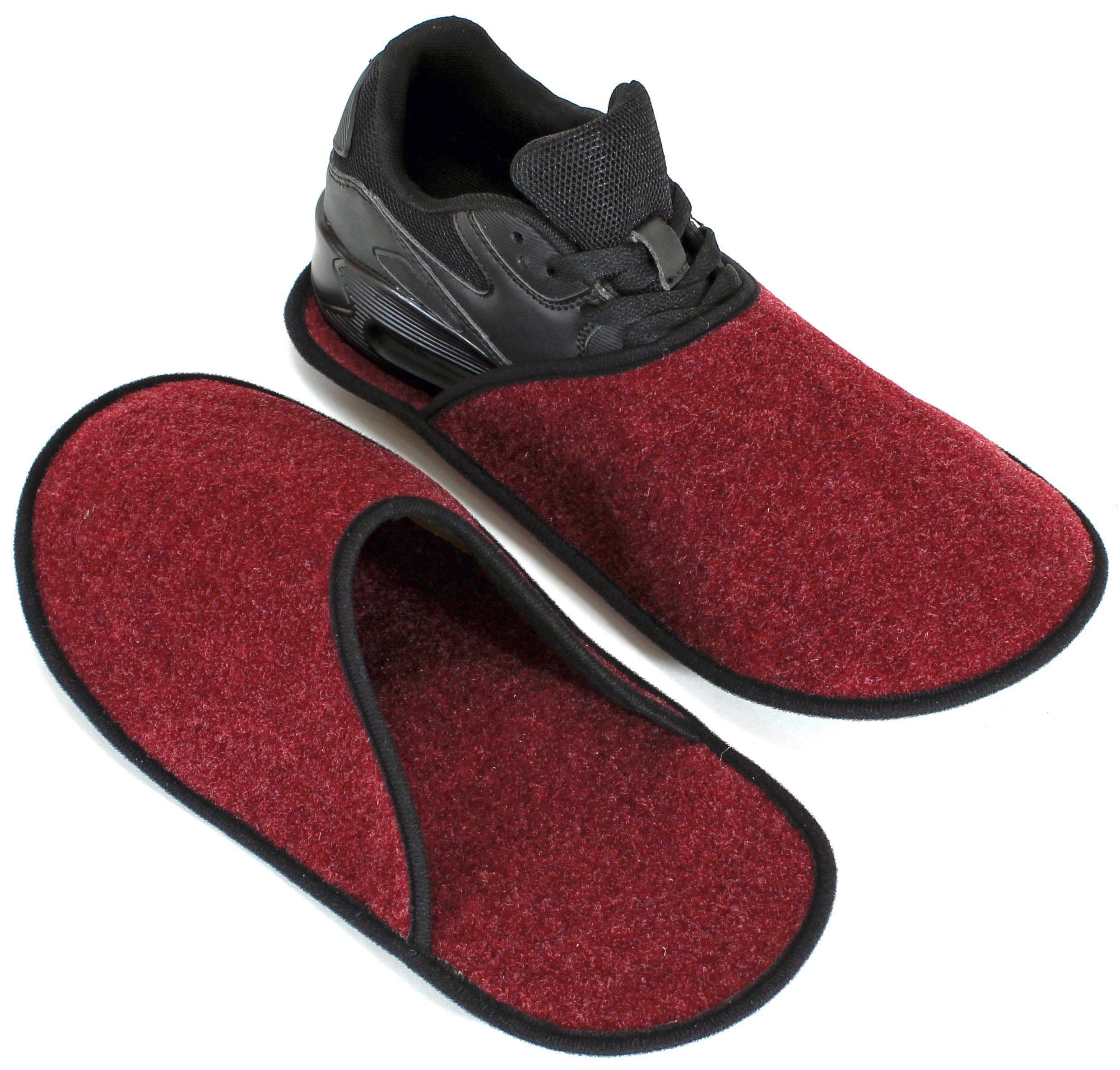 Museumspantoffeln Unsere Museumspantoffeln sind aus synthetischem Filz mit schonender Filzlaufsohle.Sie sind für alle Orte gedacht, wo Überzieher für Straßenschuhe zum Schutz der Fußböden notwendig sind - das kann im Gewerbebereich wie Museen, Büros, Kindergärten oder auch für den privaten Wohnraum sein. Das macht sie zu idealen Herren Pantoffeln und Damen Pantoffeln Der Überpantoffel wird einfach über das normale Schuhwerk gezogen und schützt den Boden so vor Nässe und Schmutz. Das besonders dünne Material kann einfach gefalten werden, um die Pantoffeln platzsparend zu verstauen. Die Museumspantoffel gibt es in 2 Einheitsgrößen mit einer Sohlenlänge von 30 und 37cm. Durch einen hohen Anteil an Handarbeit stellen wir eine lange Haltbarkeit und Lebensdauer der Filzpantoffel sicher. Wir stellen unsere Hausschuhe in Deutschland her und achten auf deutsche Qualität und Wertarbeit.