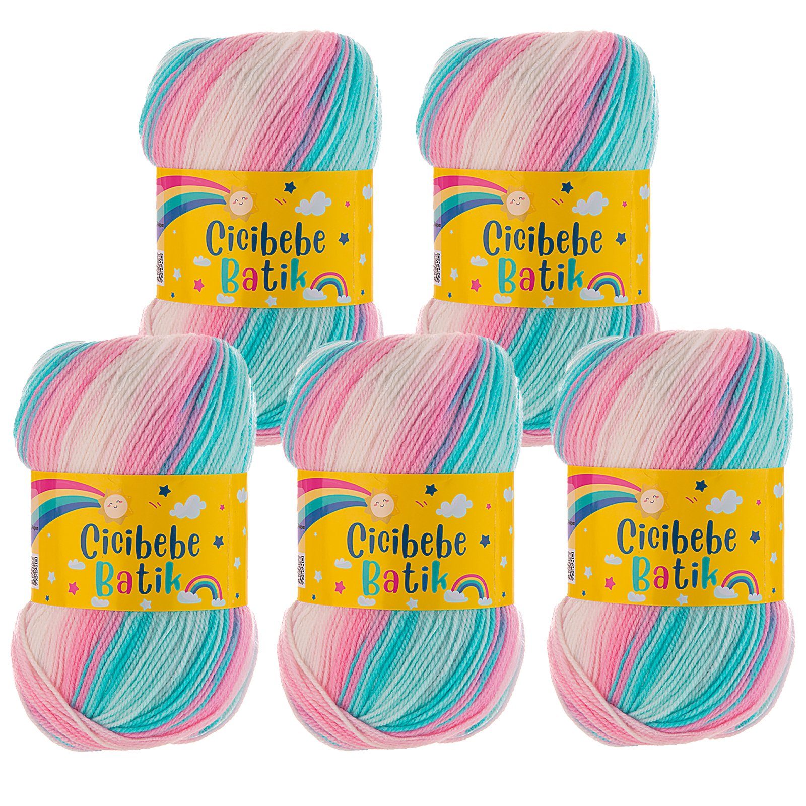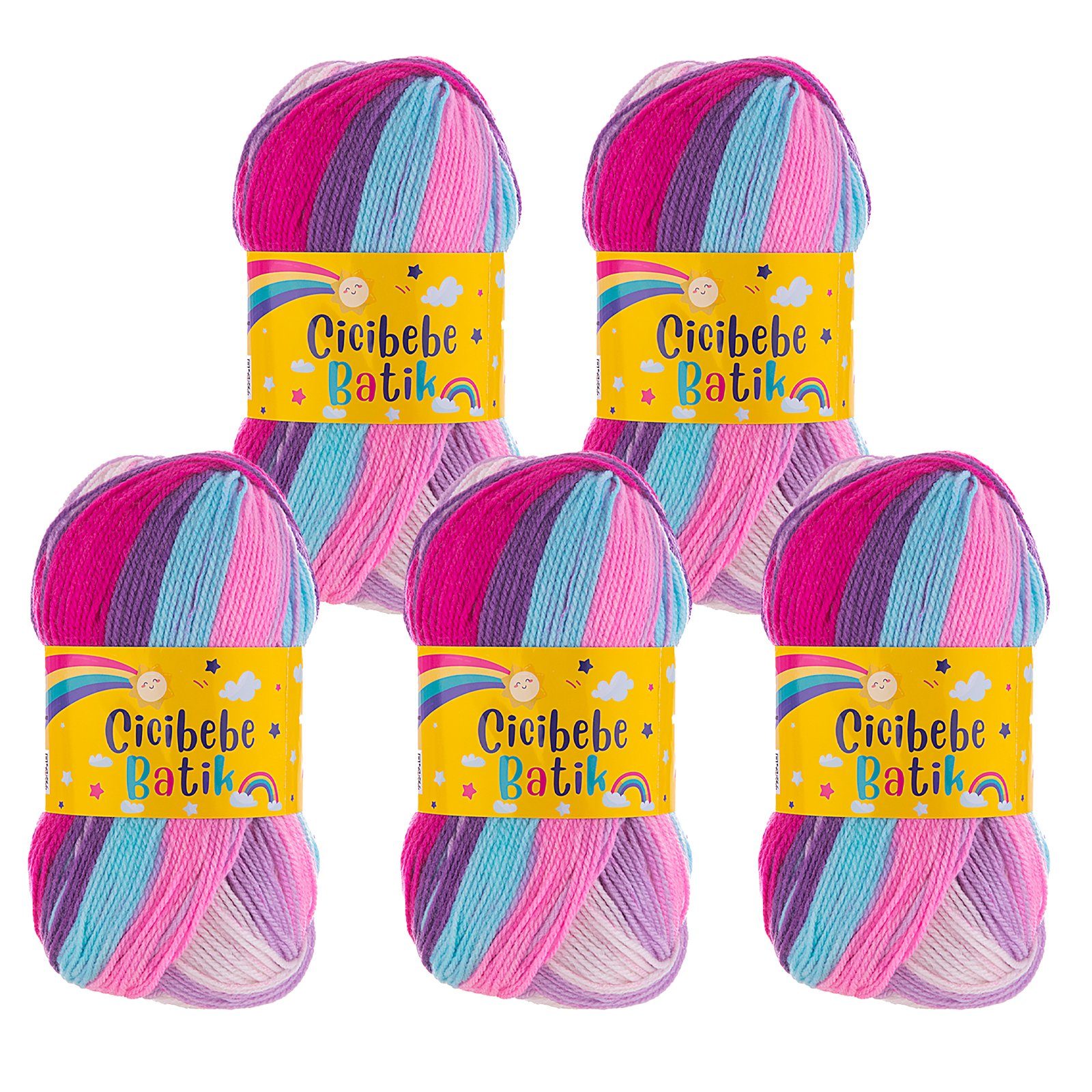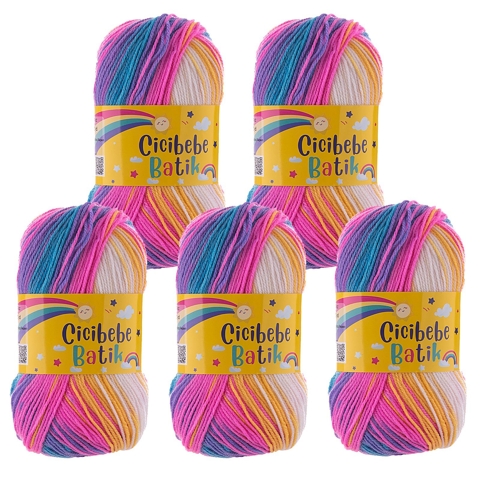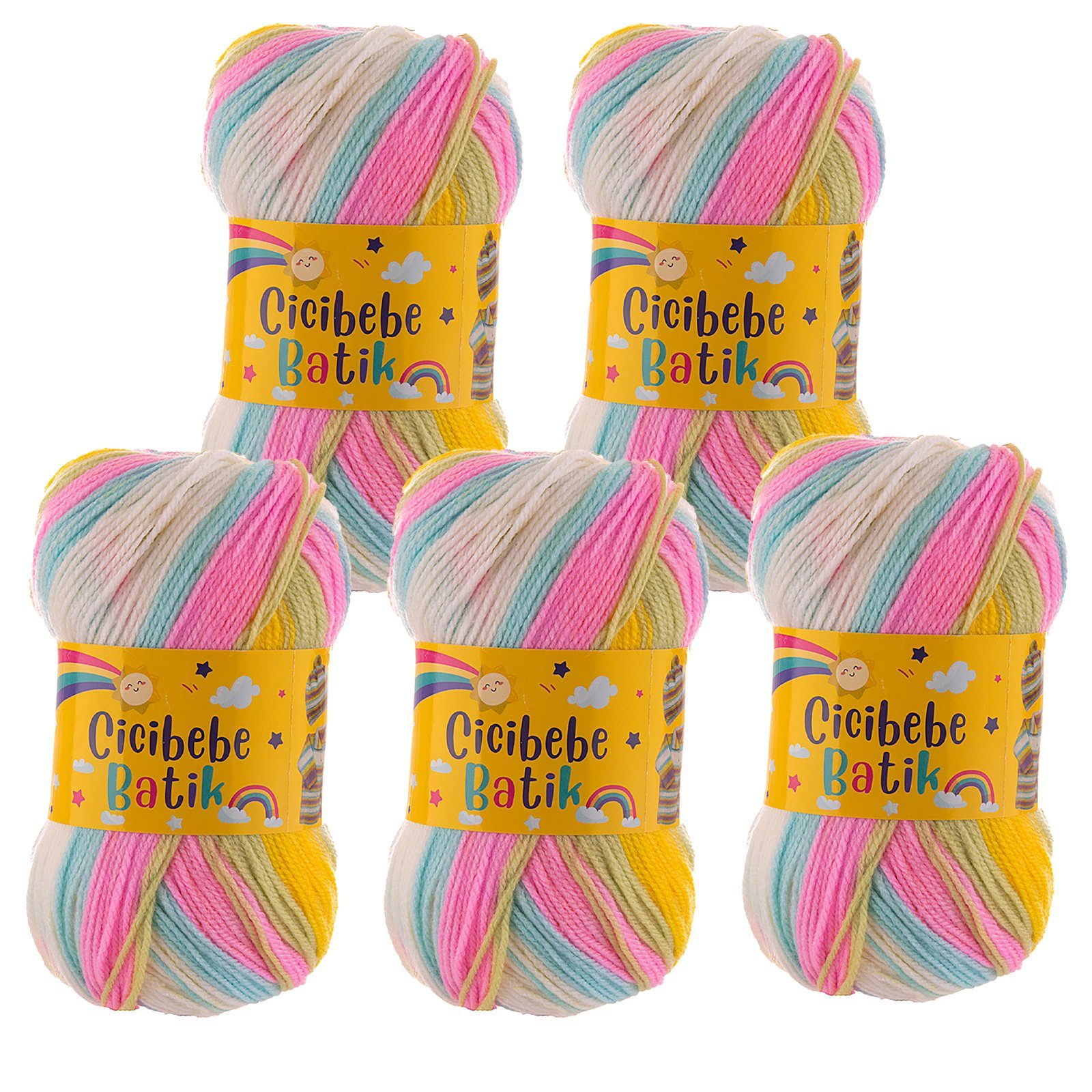 Cicibebe Batik ist ein zauberhaftes Garn mit einem langen und wunderschönen Farbverlauf. Das Garn ist angenehm weich, sanft zur Haut und eignet sich wunderbar zum Stricken und Häkeln von Kleidung für die ganze Familie. Es besteht aus hochwertigem Polyacryl und ist perfekt für alle, die empfindlich auf Wolle reagieren. Der Farbverlauf zwischen den einzelnen Farben ist fein abgestimmt und schafft sanfte Übergänge, was wunderschöne Farbwechsel in Deinen Projekten ergibt. Natürlich kann man mit Cicibebe Batik auch Pullover, Jacken, Mützen, Handschuhe und vieles mehr erschaffen.