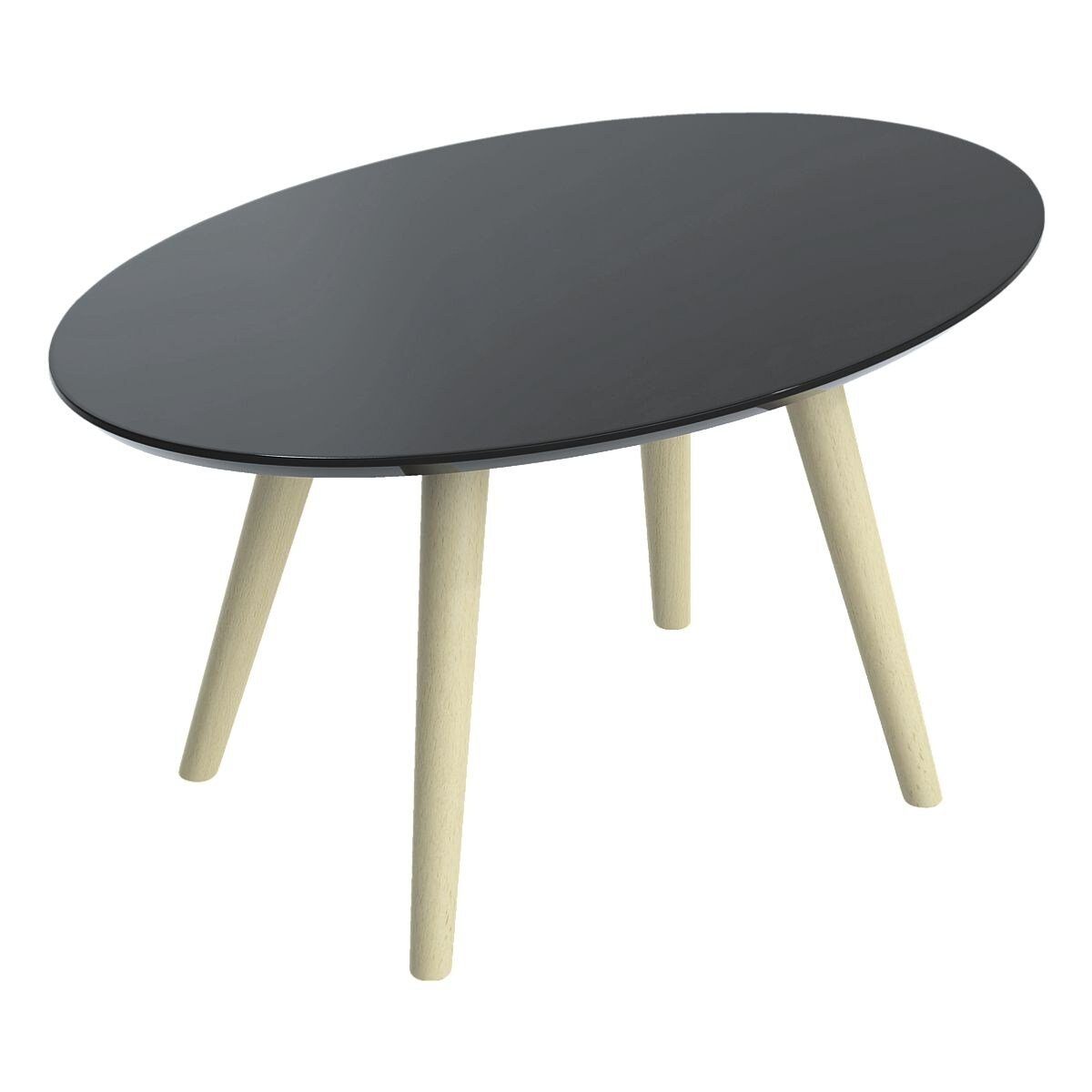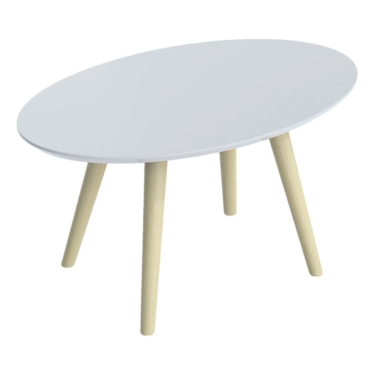 Beistelltisch »Scandi« 40 x 65 cm, ovaler Beistelltisch in skandinavischem Design, lackierte Tischplatte aus MDF (fleckenwiderstandsfähig und kratzfest), mit abgeflachten Kanten, 4 Tischbeine aus massivem Buchenholz, Gewicht: 4,6 kg, Maße (B/T/H): 65 / 40 / 35 cm, Lieferung: zerlegt (einfache Montage)