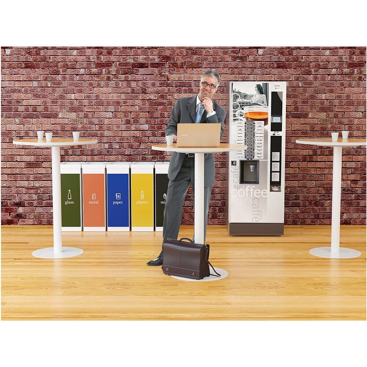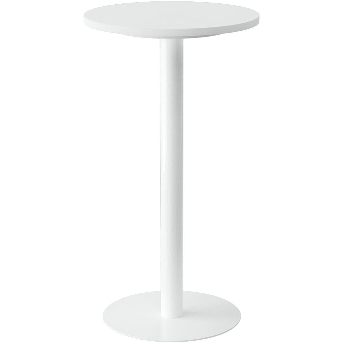 Stehtisch Ø 60 cm, Ausführung: melaminharzbeschichtete Spanplatte, Plattenstärke: 25 mm, mit ABS-Kanten, Säulenfuß-Gestell aus Stahl, weiße Epoxylackierung