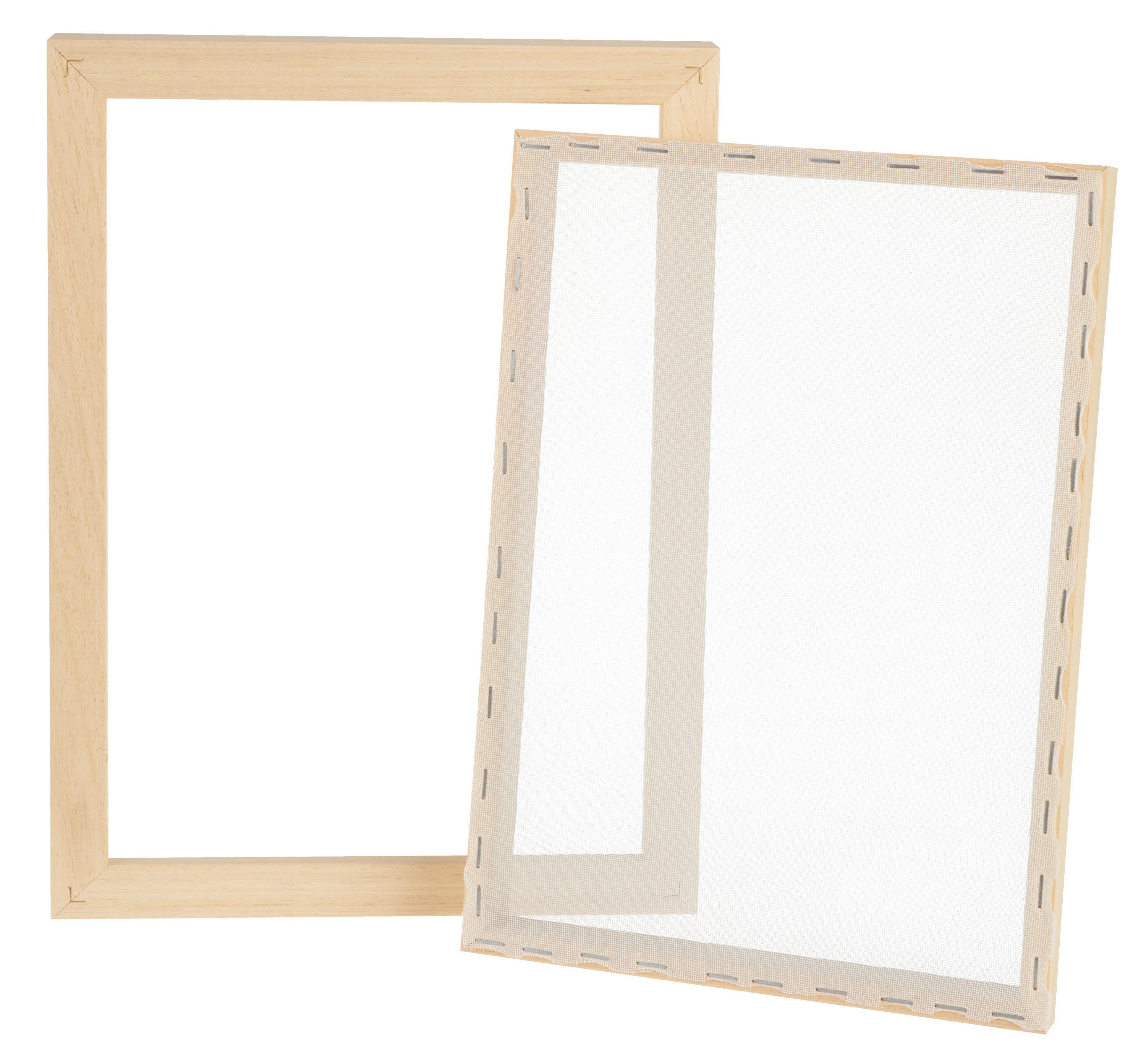 Hochwertig gearbeitete Papierschöpfrahmen aus Holz. Die Papierschöpfrahmen sind mit einem festen Kunststoffgewebe bespannt. Mit diesen dreiteiligen Rahmen lässt sich eigenes Papier herstellen. Ein Spaß für die ganze Familie.