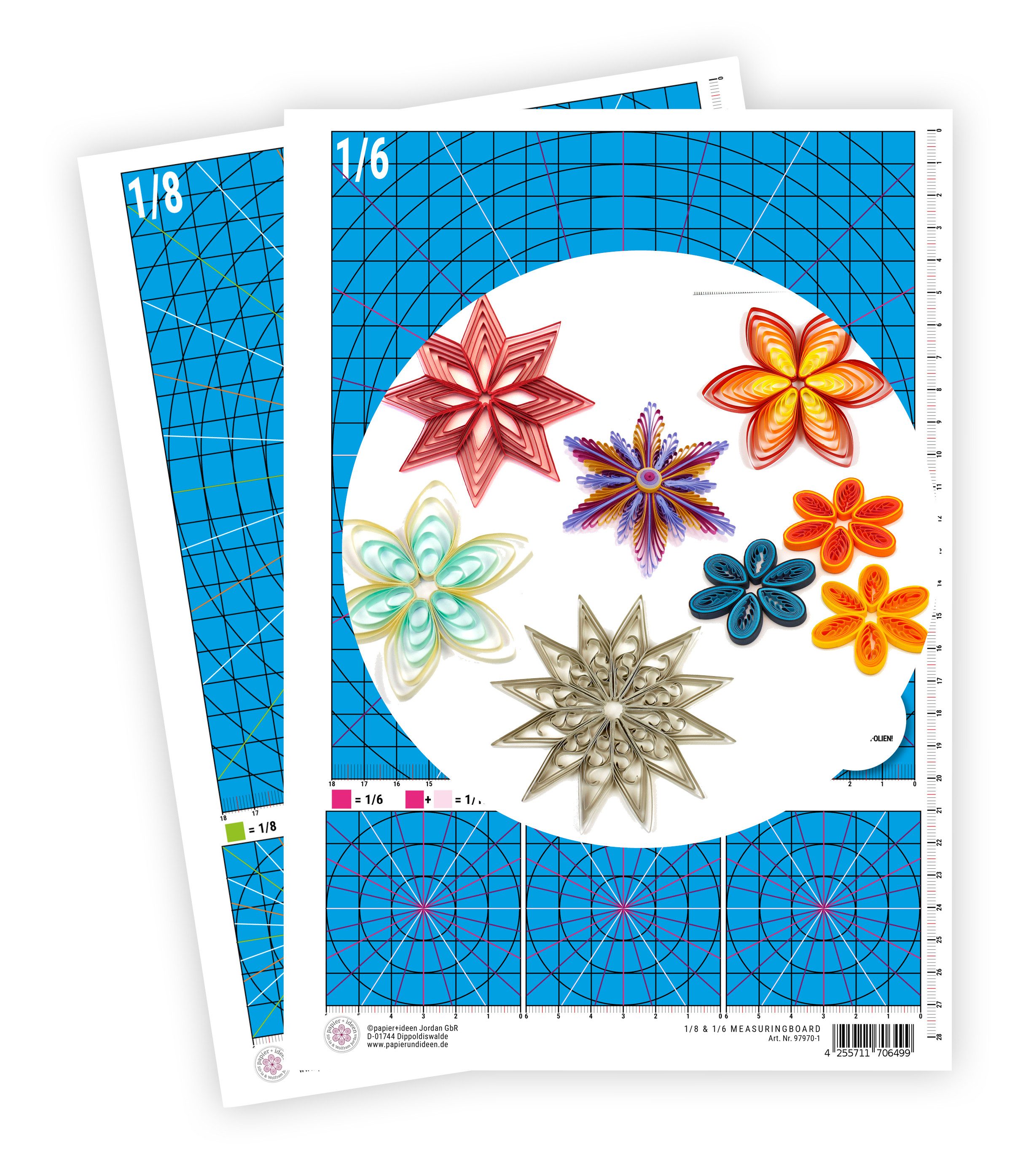 Du liebst es, deine eigene Kunst zu erschaffen und mit Papier zu arbeiten? Dann ist das Quilling 1/6 und 1/8 Maßboard A4 perfekt für dich! Die Vorderseite bietet eine 1/8- bis 1/32-Einteilung und die Rückseite eine 1/6- bis 1/24-Einteilung, so dass du immer genau die richtige Размер für deine Projekte findest. Sogar kleine Sterne und Blumen lassen sich mit dem integrierten Messblatt perfekt abmessen. Verwende das Maßboard auf einem Foamboard oder einer Pappe, indem du es einfach in der Plastikfolie belässt. Für alle Bastelbegeisterten ist dieses Quilling Zubehör im DIN Format A4 ein unverzichtbarer Helfer.. Kreiere einzigartige Werke und lass deiner Kreativität freien Lauf!