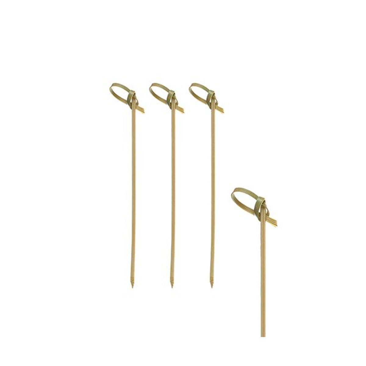 Formschöne Fingerfood-Spieße aus Bambus, oben geknotet. Dekorativ in angesagtem Design - Für das Fingerfood-Buffet, für Antipasti, asiatische Snacks (Sushi), als Cocktail- bzw. Olivenspieße