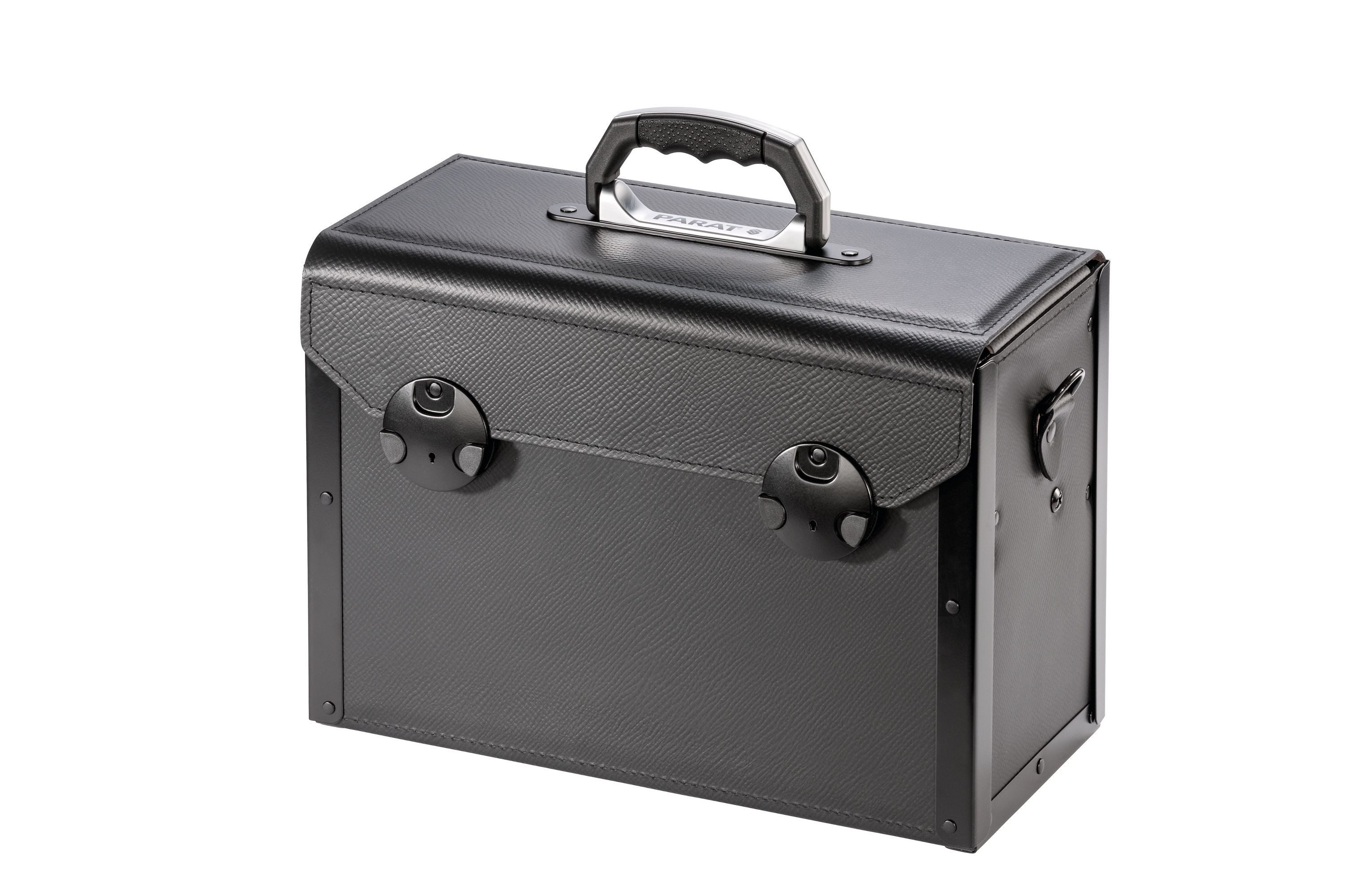 Diese Werkzeugtasche aus robustem Leder überzeugt vor allem durch ihr hohes Platzangebot. Mit einem Volumen von ca 28 Litern und einem Leergewicht von ca 4900 g bietet diese Werkzeugtasche ausreichend Platz für alle wichtigen Werkzeuge. Hinter der aufklappbaren Vorderwand befindet sich das 5-teilige Schubaldenelement aus stabilem Material. Die geräumigen Schubfächer können dabei sowohl für Werkzeug, als auch mit praktischer Unterteilung für Kleinteile verwendet werden. Hinter dem Schubladenelement befindet sich ein geräumiges Zwischenfach mit 90 Millimetern Breite. Darüber hinaus ist die Rückwand der Tasche mit einem CP-7-Werkzeughalter mit 15 Millimeter Durchmesser ausgestattet. Als besonderes Extra verfügt diese Werkzeugtasche aus Leder über einen stabilen und herausnehmbaren Trageeinsatz, mit welchem weitere Werkzeuge einfach transportiert werden können. Gesichert wird die robuste Tasche durch sicher schließende Rasterschlösser. Dank des ergonomisch geformten Griffs lässt sich die Werkzeugtasche auch voll beladen leicht transportieren.
