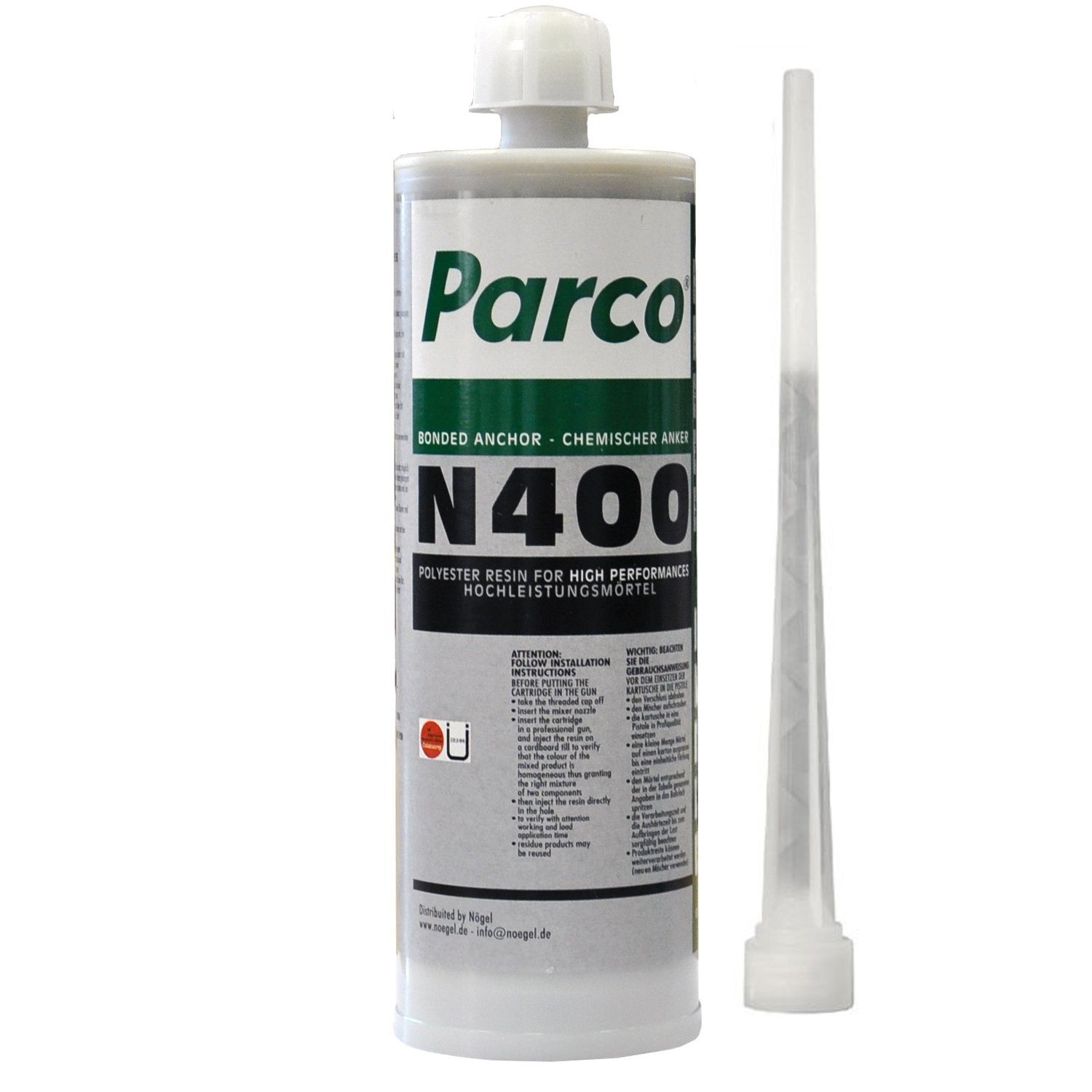 Die Komponenten bestehen aus Härter und Harzmischungen und befinden sich in zwei separat angeordneten Kammern. Unter Verwendung einer Auspresspistole vermischen sich die beiden Komponenten in einem Mischer zu hochbeanspruchbarer Mörtelmasse, die durch eine Öffnung ausgepresst wird. Der NE400 bindet sich fast unlösbar in dem jeweiligen Baustoffen. Die Belastbarkeit richtet sich wegen der starken Haltekraft hauptsächlich nach dem Baustoff, weniger nach der Verankerung.