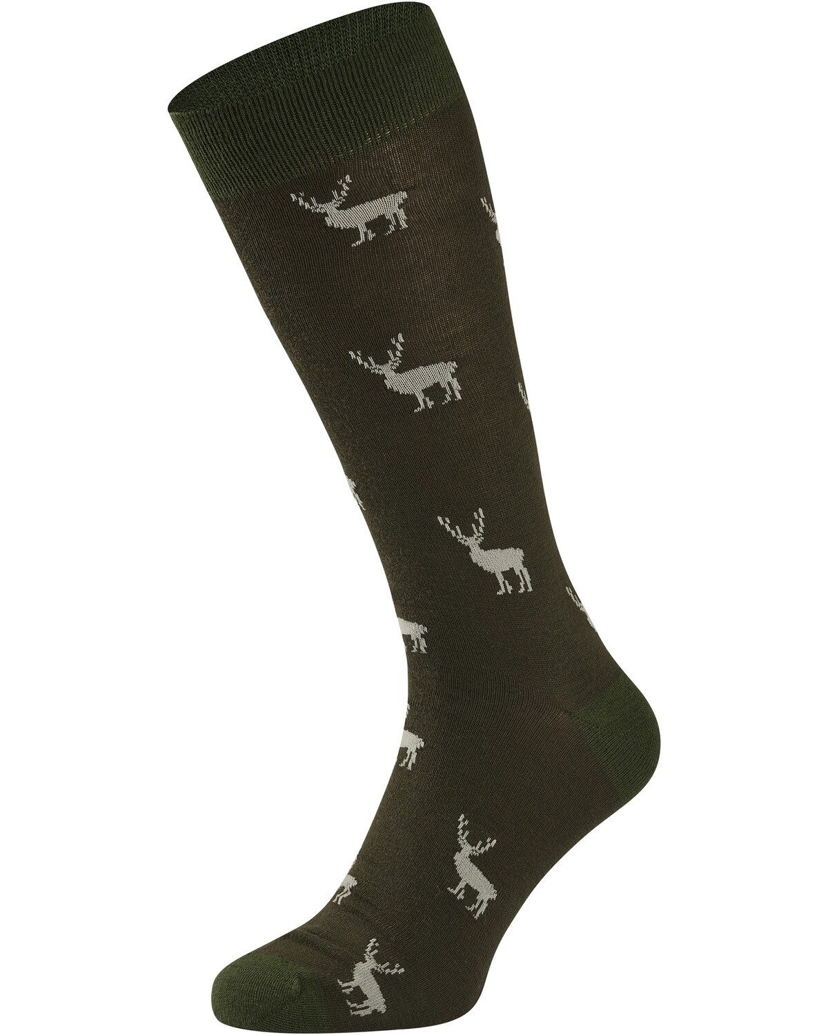 Perfekter Komfort beim Jagdausflug durch stilvolle Strümpfe Diese Socken für Herren mit eingestrickten Hirsch-Motiven sind ideal für die Jagdgarderobe. Das weiche Material mit Stretchanteil sorgt für hohen Komfort. Die Farbkombination aus Braun, Beige und Grün bietet eine ansprechende Optik. Das elastische Bündchen gewährleistet einen perfekten Sitz und unterstützt den Tragekomfort über längere Zeit.