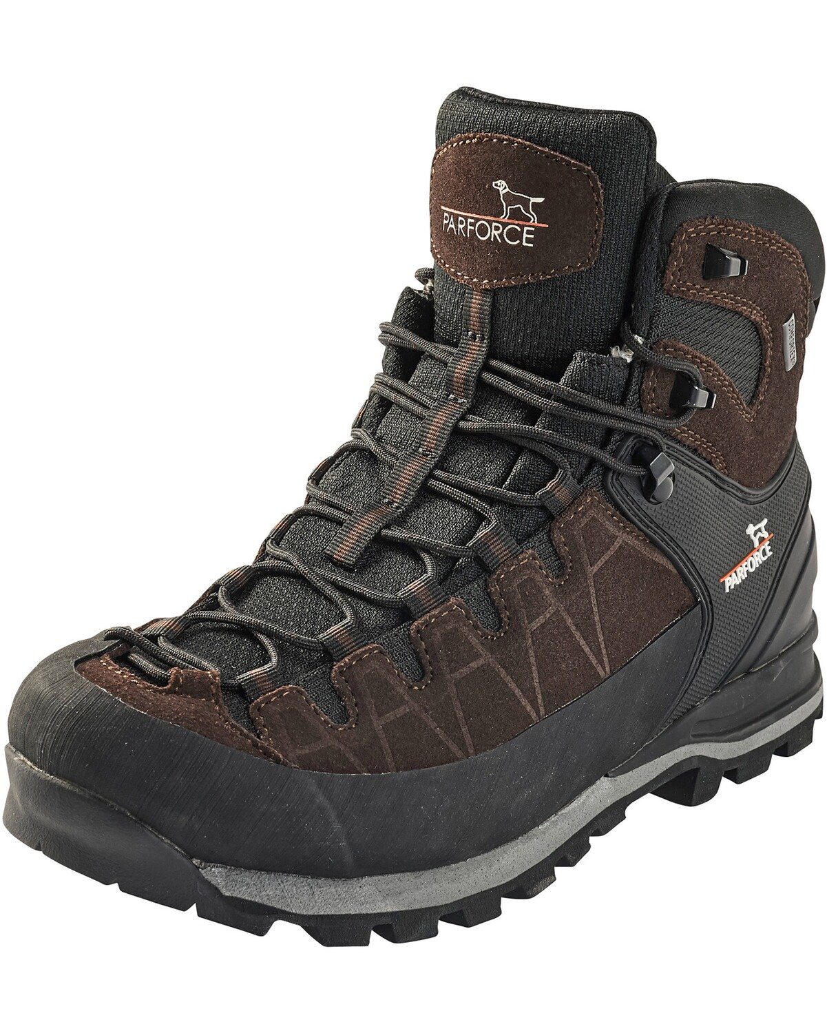 Parforce Jagdstiefel Action-Flex: der zuverlässige Begleiter in der Natur Robuste Materialien für optimale Funktionalität Der Parforce Jagdstiefel Action-Flex vereint Funktionalität mit Komfort und ist damit der ideale Begleiter für alle, die sich in der Natur bewegen. Gefertigt aus hochwertigem Veloursleder und flexiblem Mesh-Material, bietet dieser Stiefel nicht nur eine beeindruckende Langlebigkeit, sondern auch eine angenehme Flexibilität, die sich jedem Schritt anpasst. Der umlaufende Steinschlagschutz verstärkt den Stiefel zusätzlich und schützt vor äußeren Einflüssen, die bei Outdoor-Aktivitäten häufig auftreten. Komfort und Anpassungsfähigkeit Ein besonderes Highlight des Parforce Jagdstiefels ist die herausnehmbare Ortholite®-Innensohle. Diese ermöglicht es, den Stiefel individuell anzupassen, indem man bei Bedarf eine orthopädische Einlegesohle verwendet. So wird der Tragekomfort erheblich gesteigert, was längere Strecken oder unwegsames Gelände angenehmer macht. Der leichte Einstieg wird durch eine praktische Schlaufe am hinteren Teil des Stiefels erleichtert, sodass man schnell und unkompliziert loslegen kann. Trittsicherheit auf jedem Untergrund Die griffige Vibram®-Sohle ist ein weiteres herausragendes Merkmal dieses Jagdstiefels. Sie bietet einen hervorragenden Halt, selbst auf nassen oder rutschigen Böden. Dies sorgt für ein sicheres Gefühl bei jedem Schritt und macht den Parforce Action-Flex zum idealen Partner für Abenteuer in der Wildnis. Mit einem Gewicht von nur etwa 980 Gramm pro Paar und einer Schafthöhe von ca. 13 cm, sind diese Stiefel leicht genug, um nicht zu belasten, und dennoch robust genug, um den Anforderungen der Natur standzuhalten. Stilvolles Design in Braun In einem natürlichen Braun gehalten, fügt sich der Parforce Jagdstiefel Action-Flex harmonisch in jede Outdoor-Garderobe ein. Die Kombination aus Veloursleder und Mesh-Material verleiht dem Stiefel eine zeitlose Optik, die sowohl funktional als auch ansprechend ist. Oberstoff: 100% Leder; Sonstige Materialien: Textilmaterial