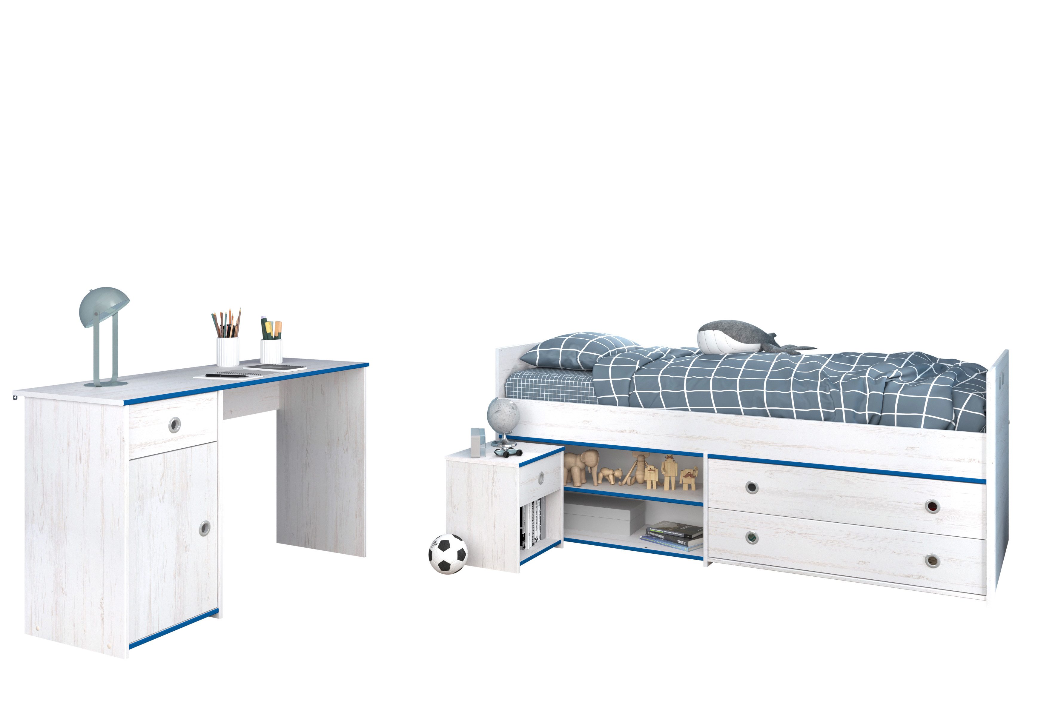 Ausführung | Stauraumbett + Schreibtisch + Nachttisch |