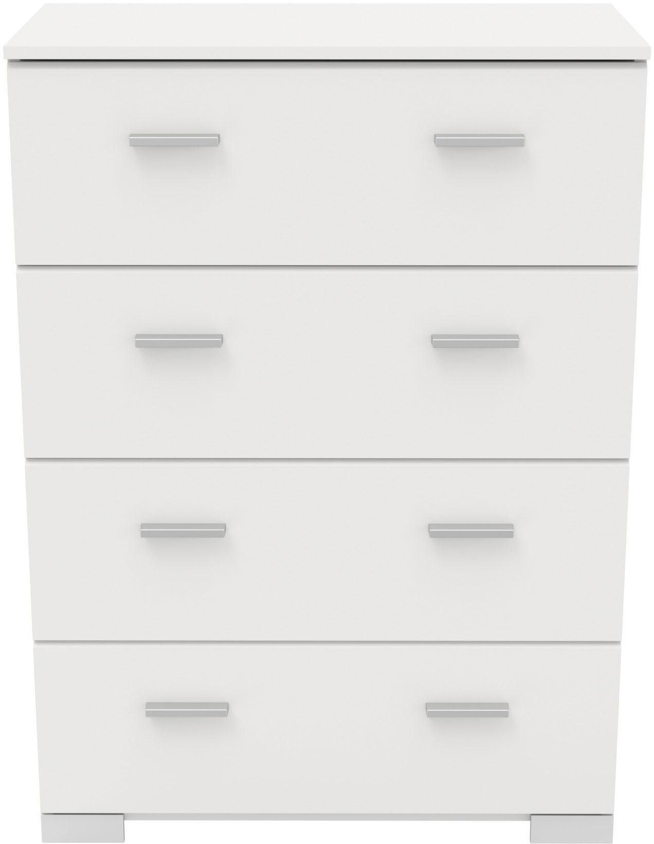 Wissenswertes | Schubkastenkommode mit 4 Schubkästen. Pflegeleichte Kunststoffoberfläche. Alufarbene Griffe aus Kunststoff. Beschläge aus Metall. Всеs ca.-Maße. Mit Aufbauanleitung. Details: