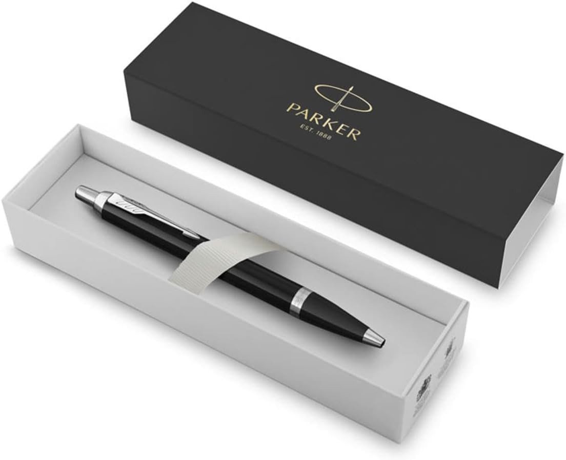 Parker IM Core Kugelschreiber | Lackierung mit Gold- oder Chromzierteilen | Mittlere Spitze | Blau | Geschenkbox C.C. Chromzierteile G.C. Goldzierteile Die Parker IM Kollektion Professioneller Stil trifft auf zeitlose Handwerkskunst Parker IM Stifte vereinen schicke, kultivierte Designs mit einer schlanken, kegelförmigen Form und sind so stilvolle sowie zuverlässige Begleiter beim Schreiben. Diese Parker Stifte werden mit einer Reihe von innovativen Beschichtungen hergestellt, die sowohl klassisch als auch modern sind, und sorgen so für zeitlose Schönheit. Bei Parker IM Stifte trifft stilvolle Einfachheit auf das mehr als 125-jährige Markenerbe. Kegelförmige Silhouette Ihr perfekter Partner beim Schreiben! Die Stifte verfügen über eine ausgewogene, schlanke Form, das bequem in Ihrer Hand liegt und so für ein sowohl praktisches als auch luxuriöses Schreibgefühl sorgt. Schicke Beschichtungen Die von Profis inspirierte große Auswahl an Beschichtungen sorgt für eine moderne Ästhetik und erinnert gleichzeitig an das glanzvolle Erbe der Marke. Die Stifte verfügen zudem über den unverkennbaren Parker Pfeil-Clip. Luxuriöse Tinte Parker Nachfülltinte ist stark pigmentiert und sorgt für ein müheloses, ununterbrochenes und elegantes Schreibgefühl.