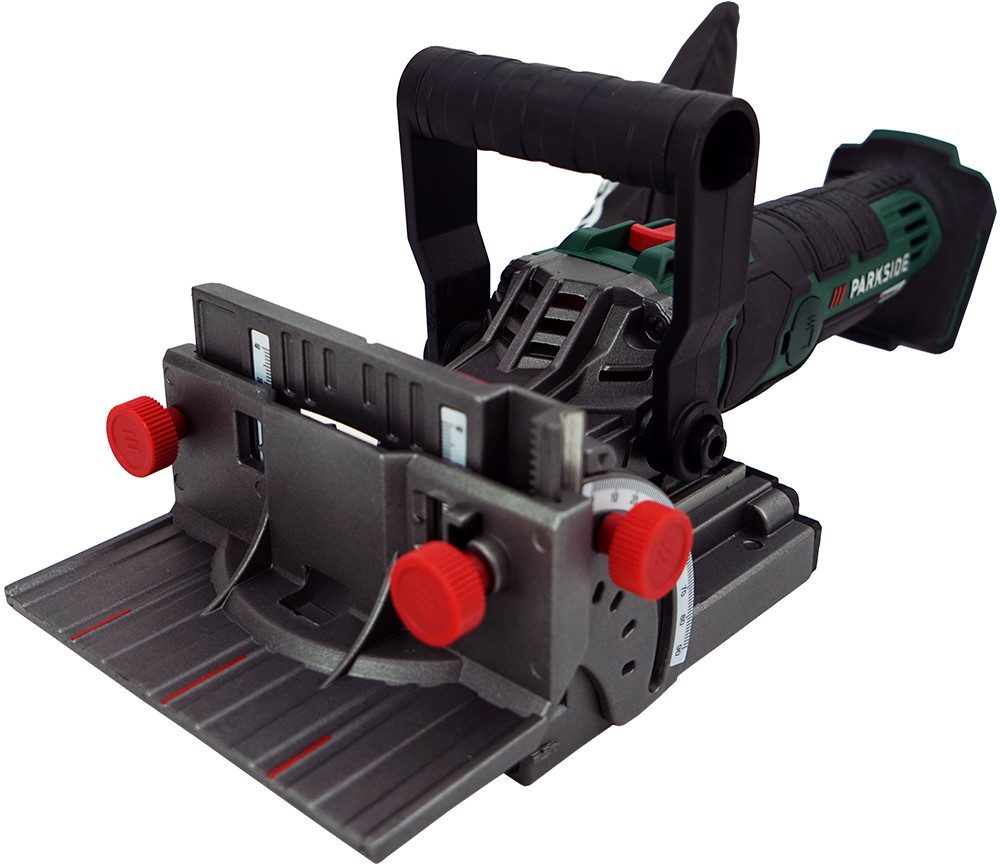 Parkside Flachdübelfräse 20V Akku Flachdübel Fräse PFDFA 20 - ohne Akku und Ladegerät, Sauberes Arbeiten durch Staubfangbeutel