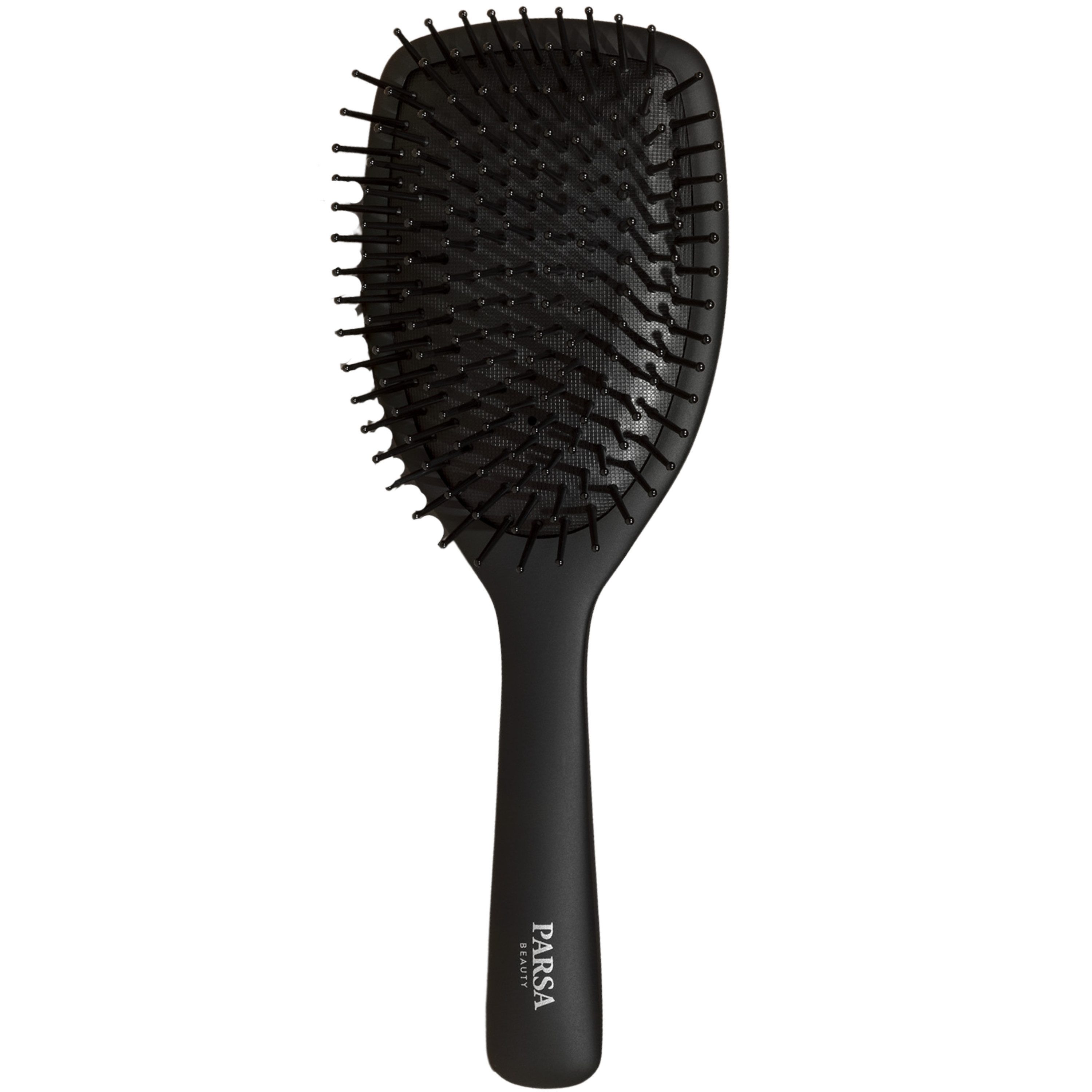 Allrounder für antistatisches Haarstyling. Die Paddle-Bürste mit abgerundeten Kunststoffstiften ist ein essenzielles Styling-Tool für alle Haartypen. Die mit Carbon und Turmalin angereicherten Kunststoffstifte können einer statischen Aufladung der Haare entgegenwirken und massieren zusätzlich die Kopfhaut.