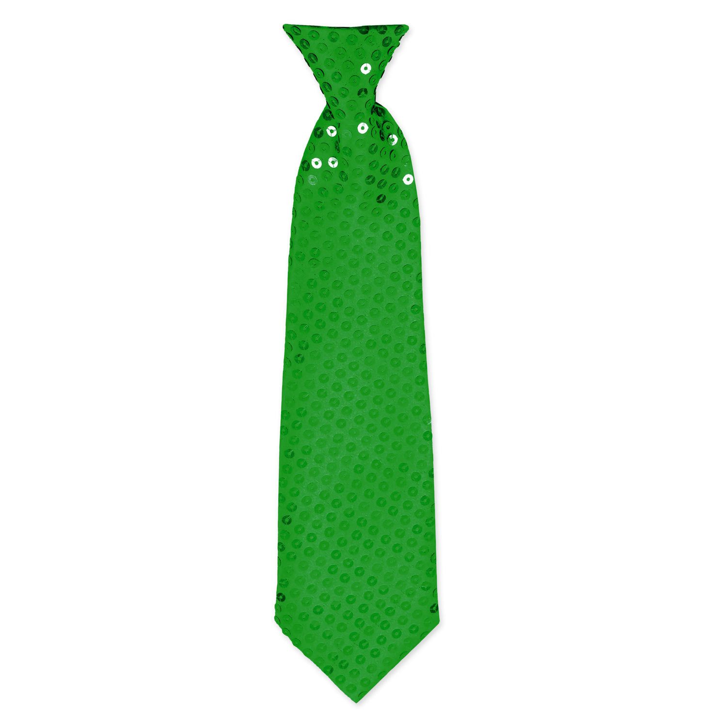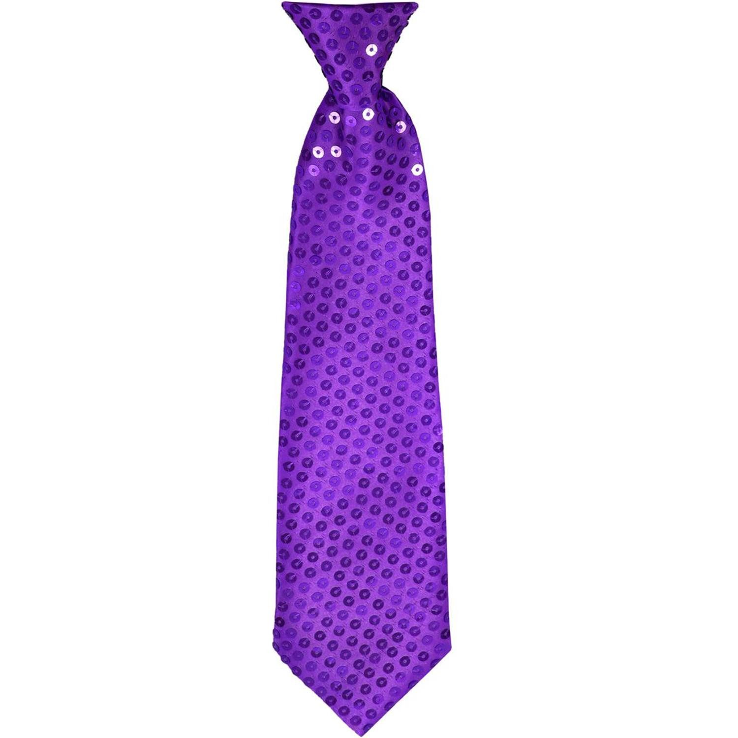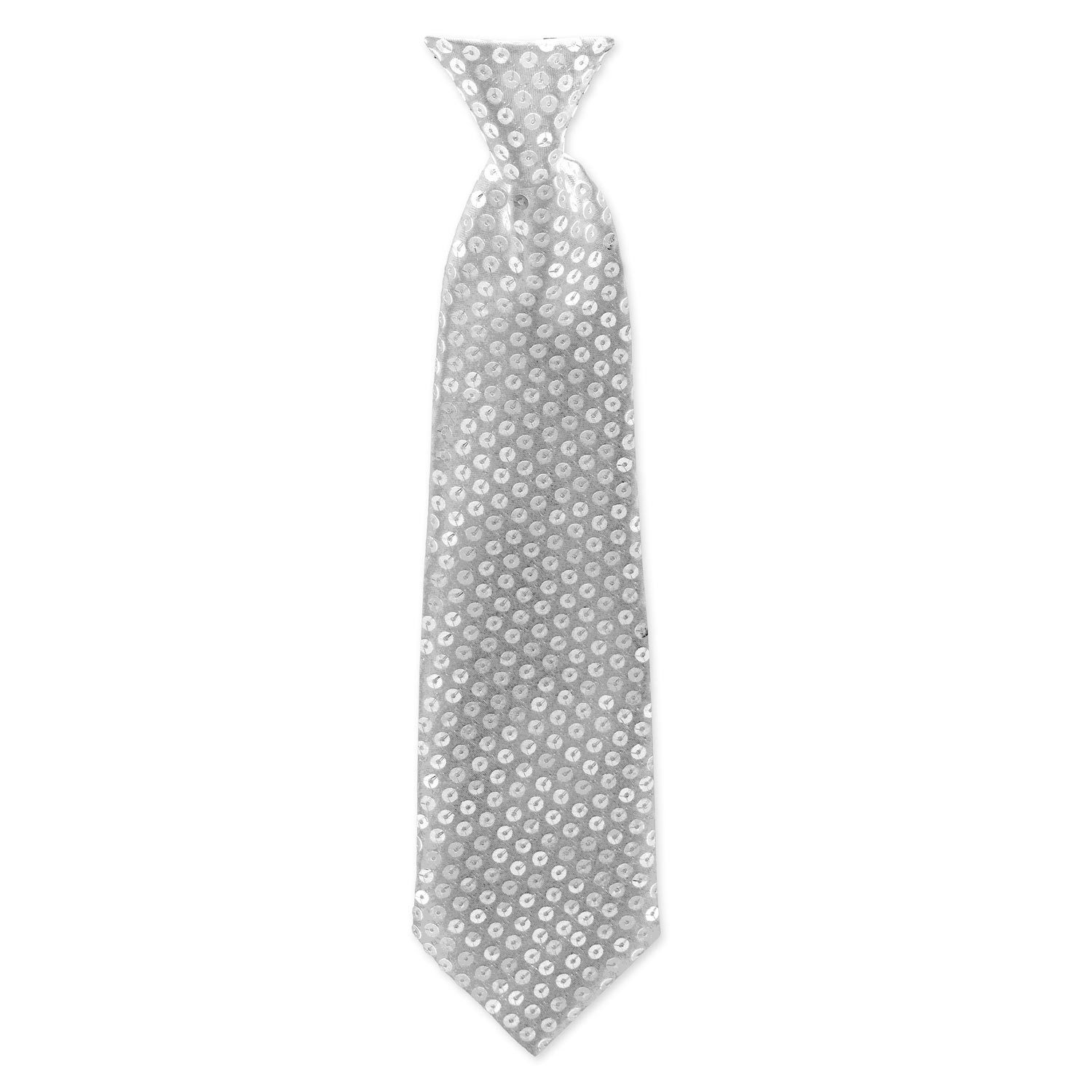 Die Krawatten sind mit vielen glänzenden Pailletten verziert und werden mit einem schmalen Gummiband gehalten.