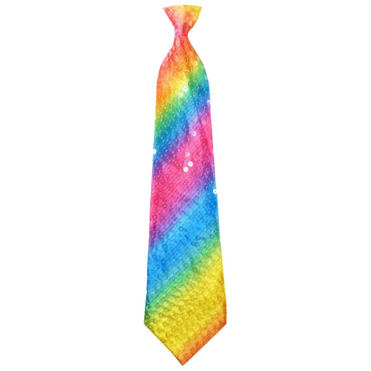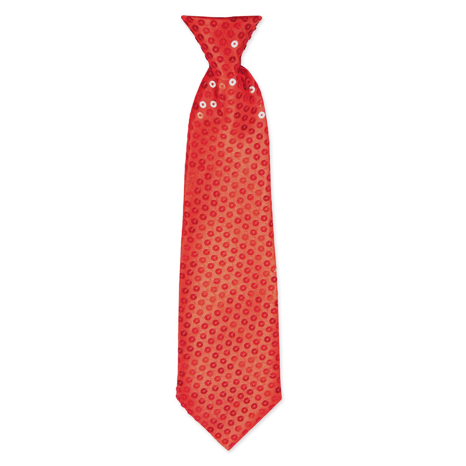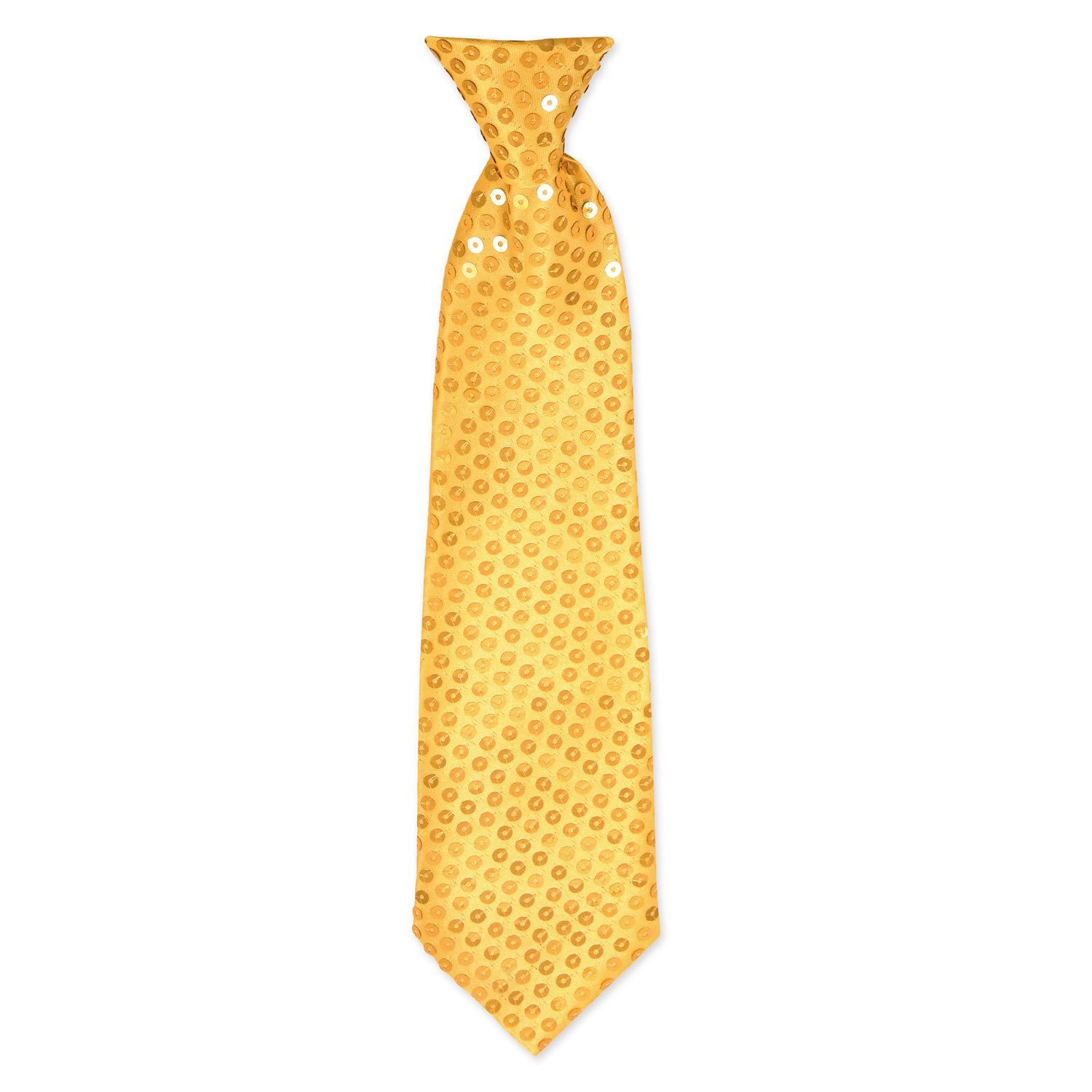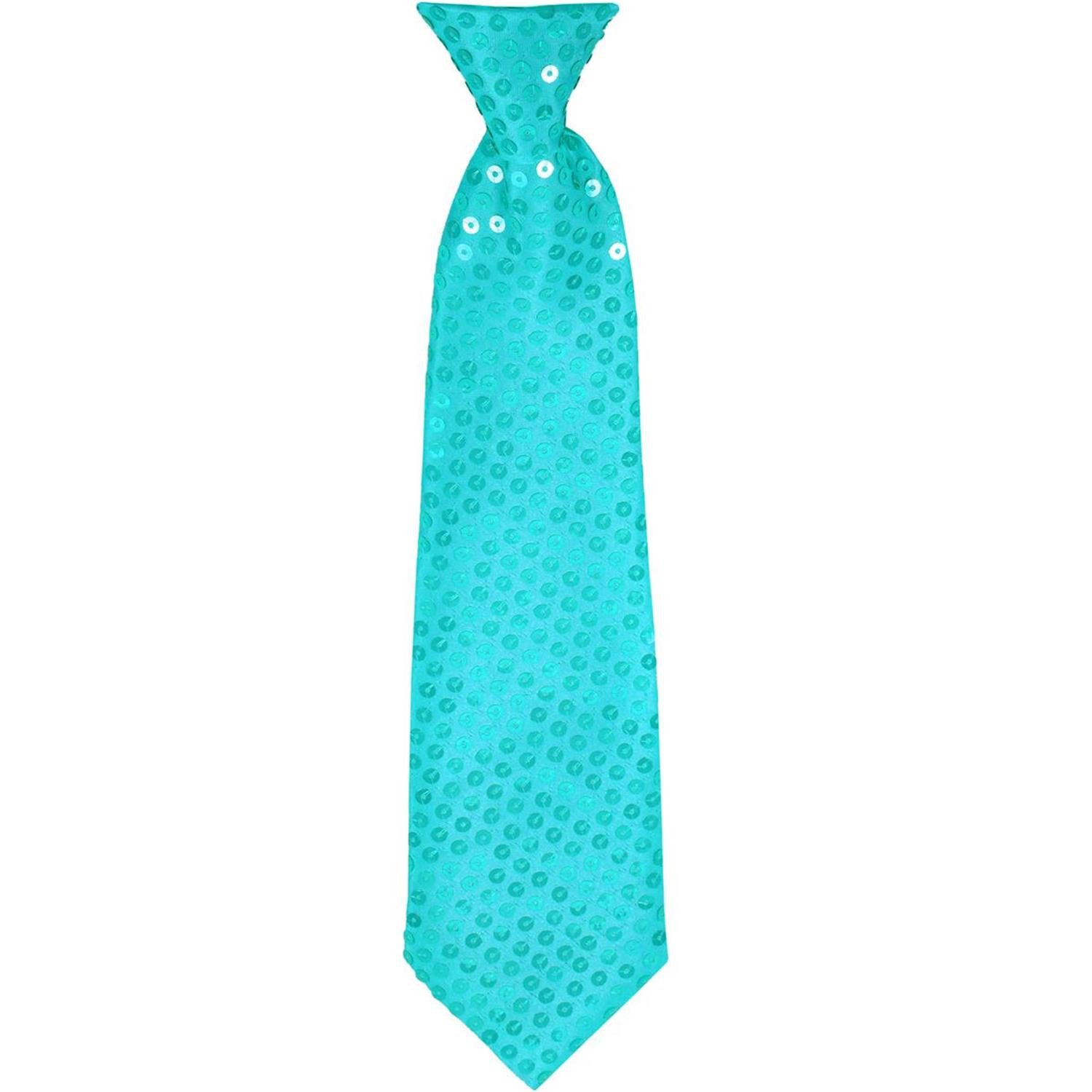 Die Krawatten sind mit vielen glänzenden Pailletten verziert und werden mit einem schmalen Gummiband gehalten.