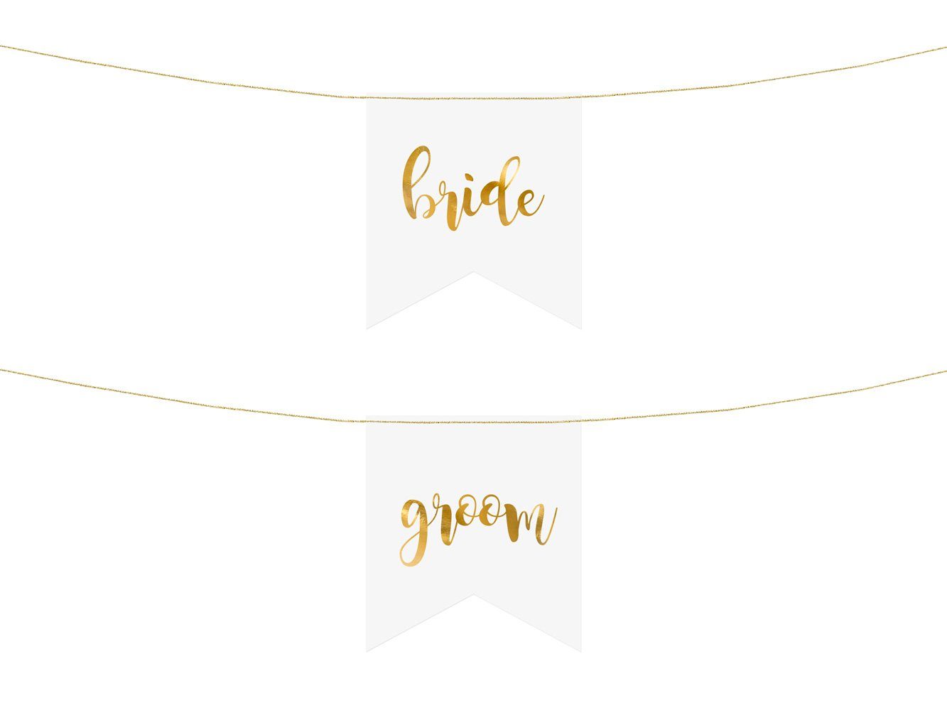 Braut und Bräutigam Stuhlschilder / Stuhl Deko Anhänger für Hochzeit / Stuhlbanner mit Schriftzug: Bride & Groom Material: Papier - Größe: ca. 20 x 21,5 cm - Packungsinhalt: 2 Stuhl Anhänger - Farbe: weiß - gold Beschriftung in goldener Metallic - Optik - Schilder sind jeweils an goldenem Schnur befestigt - leicht und einfach an den Stühlen zu binden, wiederverwendbar Mit diesen schönen Stuhlschildern mit Aufschrift Bride und Groom können Sie Ihren Brautpaar - Platz besonders betonen! Die trendigen Stuhlanhänger sind nicht nur eine perfekte Stuhldeko für Ihre Hochzeit, sondern auch als Deko der Hochzeitslocation vielseitig einsetzbar. Ob als Hochzeitsdeko - Set im romantischen, modernen oder klassischen Stil. Ebenfalls für Gartenhochzeit / Hochzeit - Gartenparty im Sommer oder Natur / Greenery Wedding sind die Stuhl - Banner bestens geeignet. Diese Stuhl Deko lässt sich hervorragend auch mit anderem Tischdeko / Partydeko kombinieren. Thema: Liebe, Klassisch, Modern, Romantisch, Greenery, Natur - Anlässe: Hochzeit, Hochzeitsfeier Die Farben können aufgrund von unterschiedlichen Monitor Einstellungen vom Foto leicht abweichen