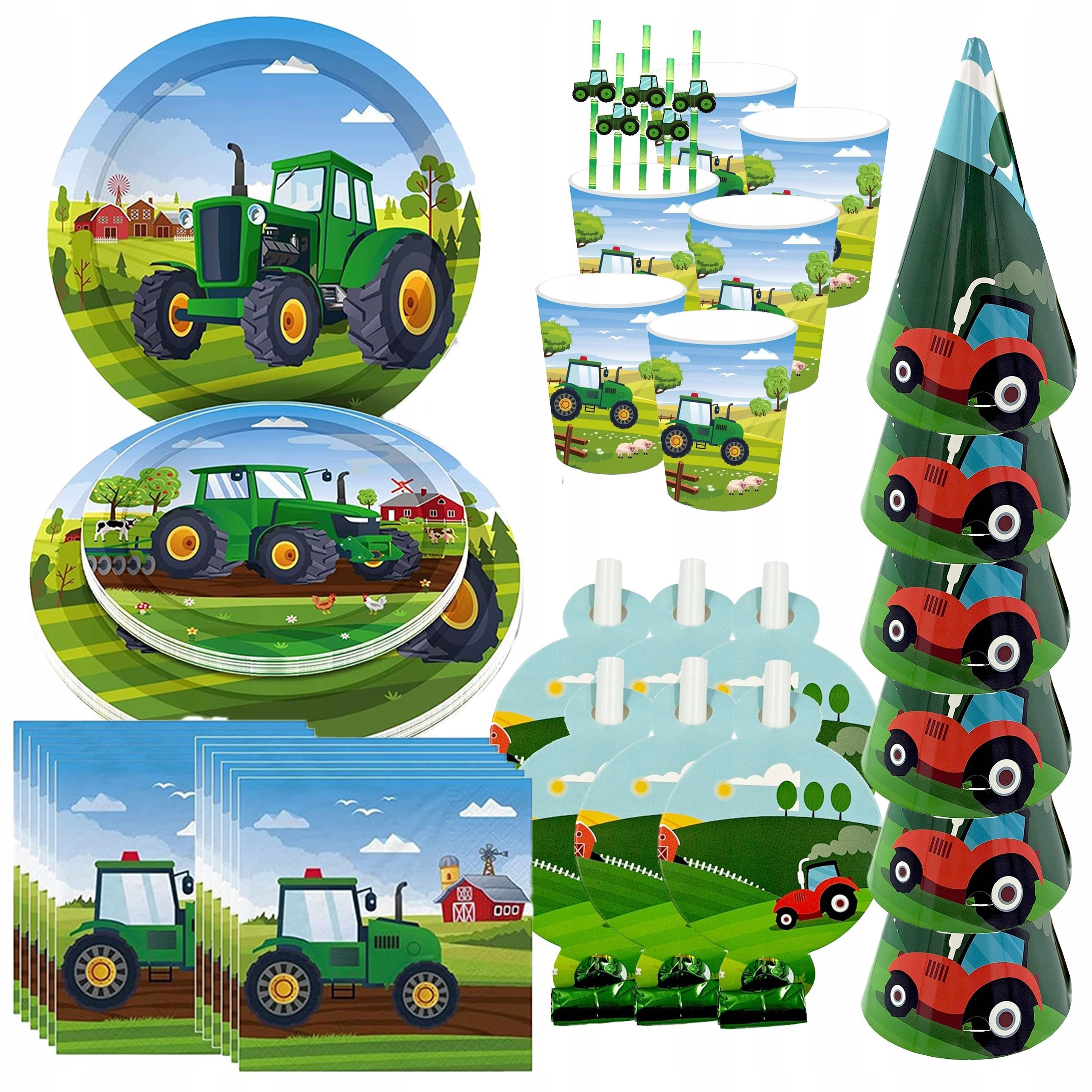 Planen Sie den perfekten Geburtstag für Ihren kleinen Traktorliebhaber? Mit unserem Traktor-Farm-Geburtstagsset wird jede Feier unvergesslich! Всеs, was Sie für eine einfache und schnelle Partyvorbereitung benötigen, ist enthalten: Teller, Becher, Servietten, Strohhalme, Hüte und Partytröten – mit niedlichen Designs und umweltfreundlichen Materialien.