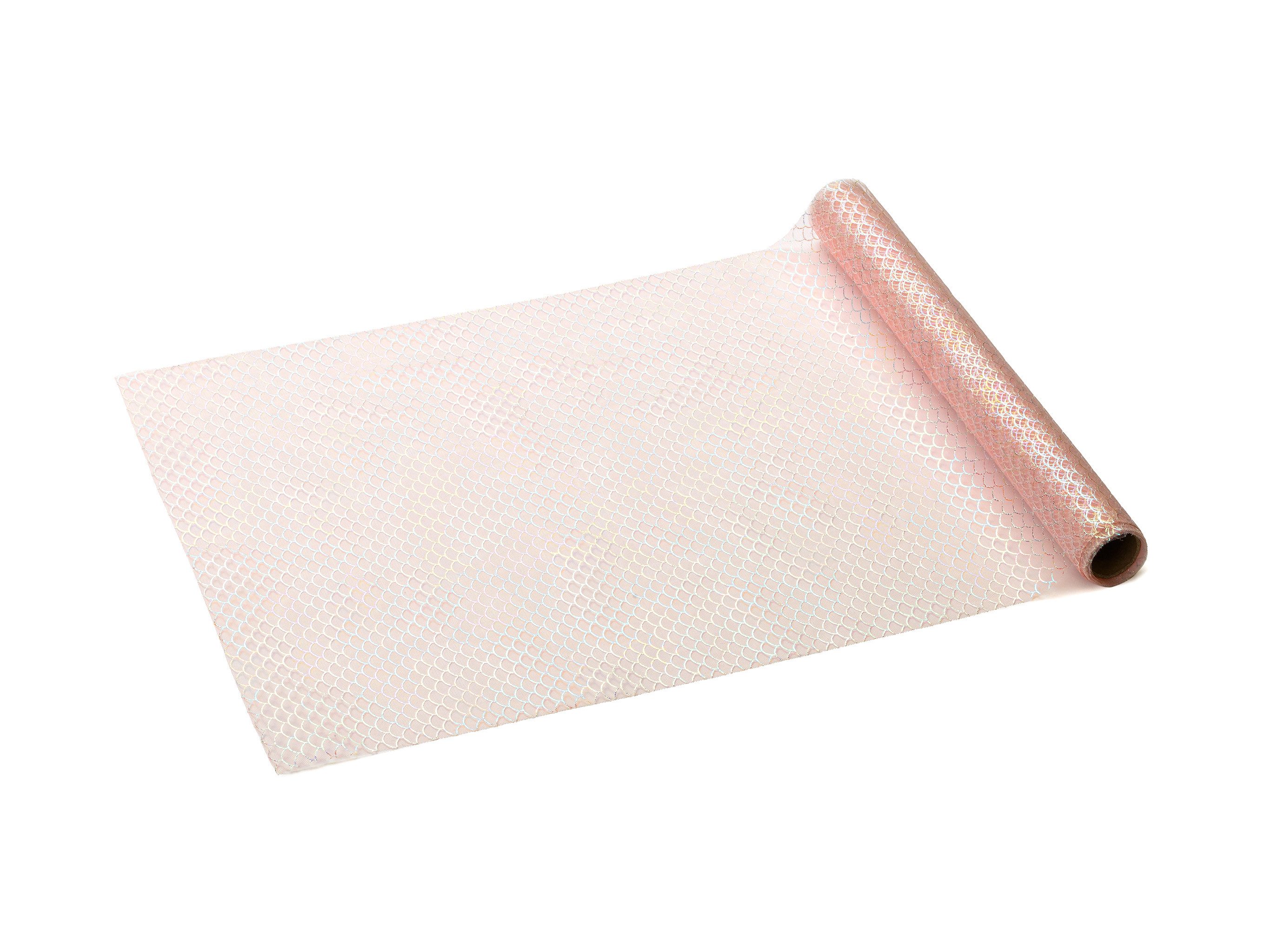 PRODUKT: Tischband mit Schuppenmuster / MATERIAL: Textil - Stoff, 100% Polyester / GRÖSSE: 3 m x 36 cm / FARBE: hellrosa - babyrosa - zartrosa - pastell rosa - irisierend - holo -