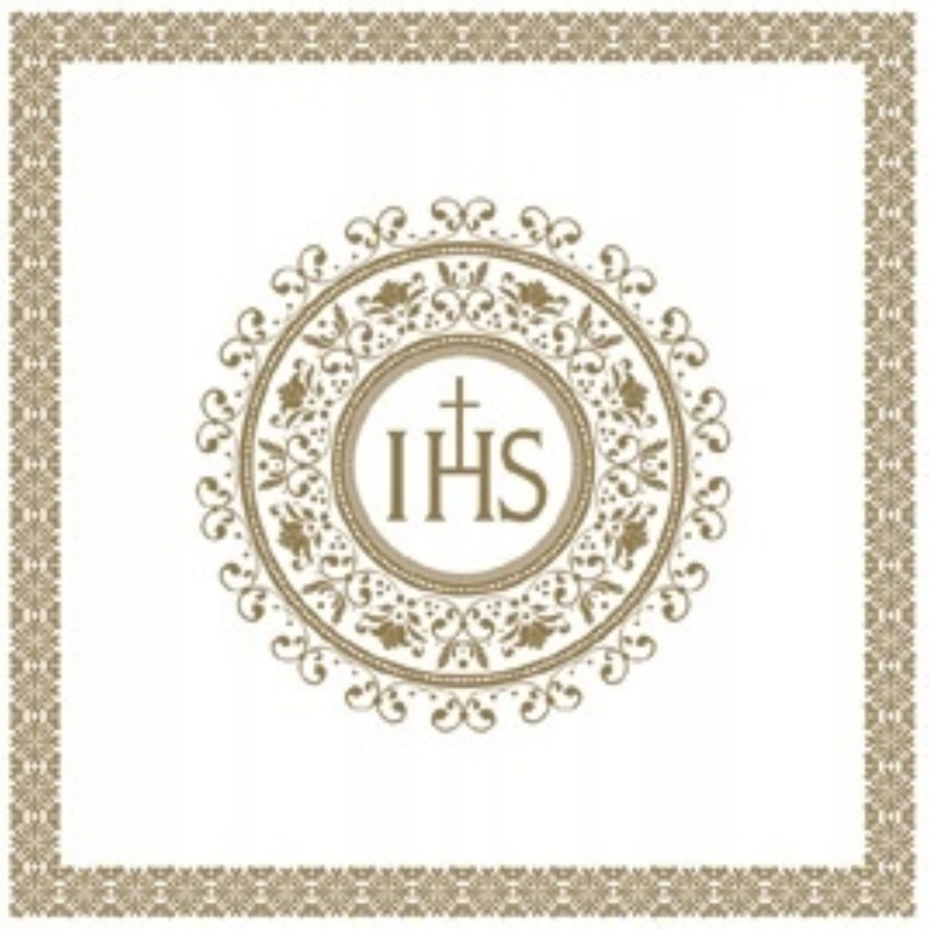 Edle Servietten zur Heiligen Kommunion – IHS Emblem Gold Unsere hochwertigen Papier-Servietten mit Kommunionsmotiv sind die perfekte Tischdekoration für diesen besonderen Anlass. Die stilvolle IHS Goldprägung sorgt für eine feierliche Atmosphäre.