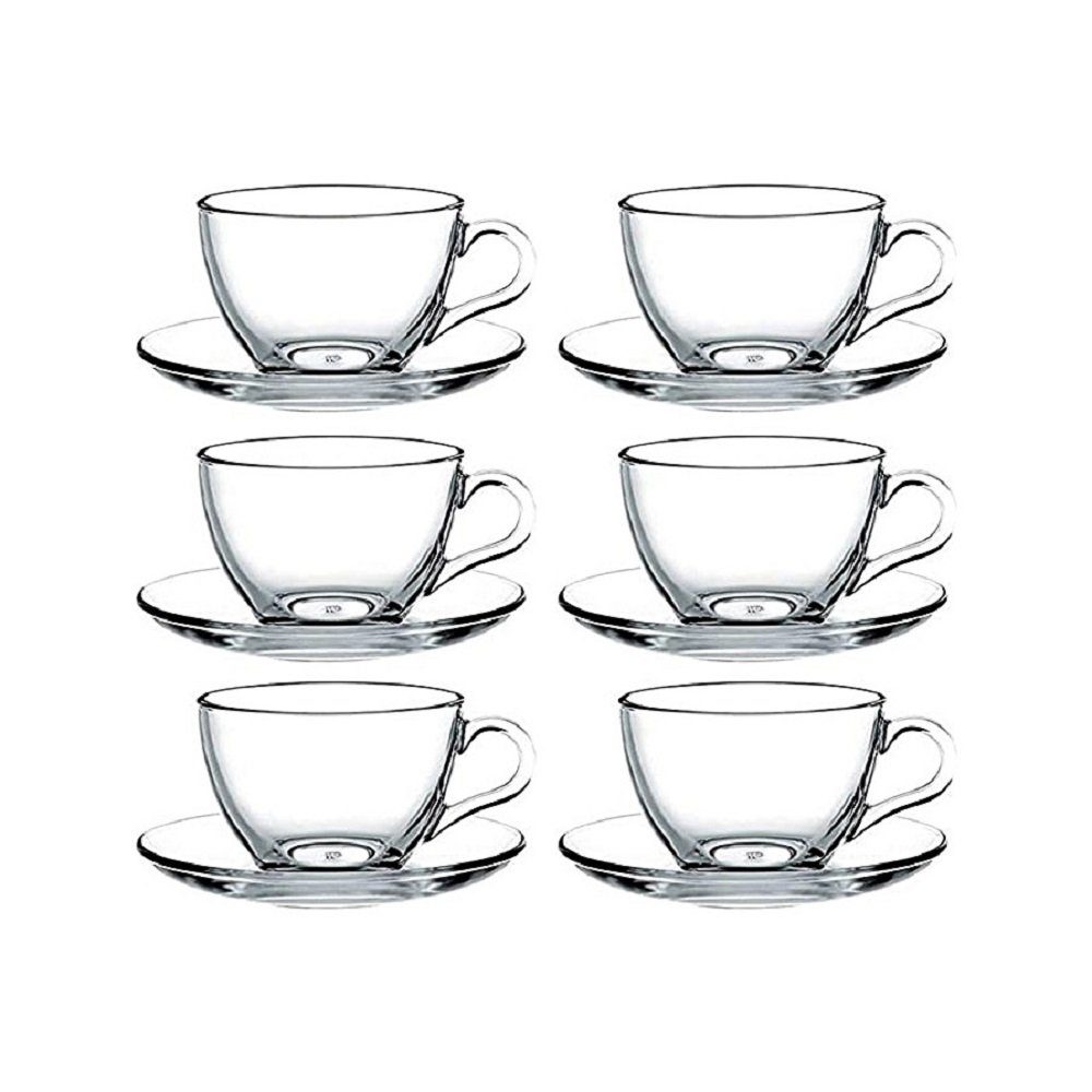 GLASPACKUNG MIT 6 TRANSPARENTEN BECHERN MIT SCHALE. ELEGANT, WIDERSTANDSFÄHIG, FÜR DEN TÄGLICHEN GEBRAUCH GEEIGNET UND PERFEKT SPÜLMASCHINENSICHER.