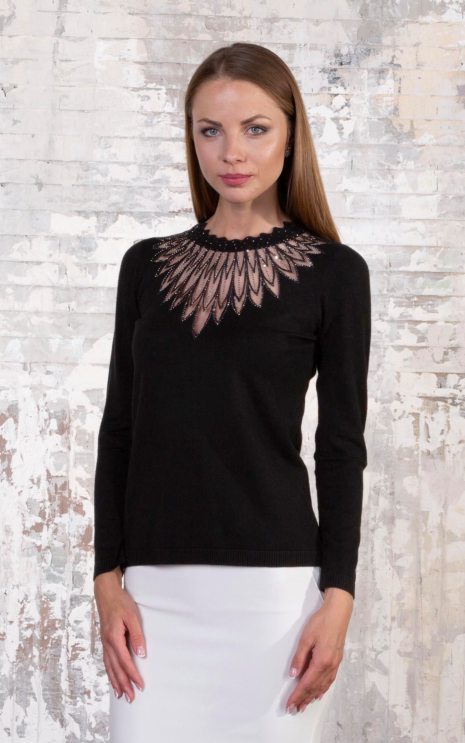Dieser schwarze Passioni-Pullover ist eine herausragende Wahl für stilbewusste Damen, die auf der Suche nach einem eleganten und gleichzeitig modernen Kleidungsstück sind. Der Pullover besticht durch seine klassische schwarze Farbe, die vielseitig kombinierbar ist und sich sowohl für formelle Anlässe als auch für den Alltag eignet. Das besondere Highlight dieses Pullovers ist der Zierausschnitt aus transparentem Stoff, der dem Modell eine raffinierte Note verleiht. Dieser transparente Bereich ist kunstvoll gestaltet und lässt durch seine Transparenz eine verführerische, aber dennoch subtile Hautpartie erahnen. Der Zierausschnitt ist aufwendig mit funkelnden Strasssteinen verziert, die dem Pullover einen glamourösen Akzent verleihen. Die Strasssteine sind gleichmäßig verteilt und reflektieren das Licht auf eine elegante Weise, wodurch der Pullover im Licht besonders zur Geltung kommt. Die figurbetonte Passform des Pullovers sorgt dafür, dass er sich schön an die Silhouette anschmiegt und eine schmeichelhafte Form bietet. Die hochwertige Materialverarbeitung garantiert sowohl Komfort als auch Langlebigkeit. Dieser Pullover ist ideal für besondere Anlässe, bei denen Sie einen Hauch von Glamour und Eleganz ausstrahlen möchten, und lässt sich problemlos zu einer Vielzahl von Outfits kombinieren.