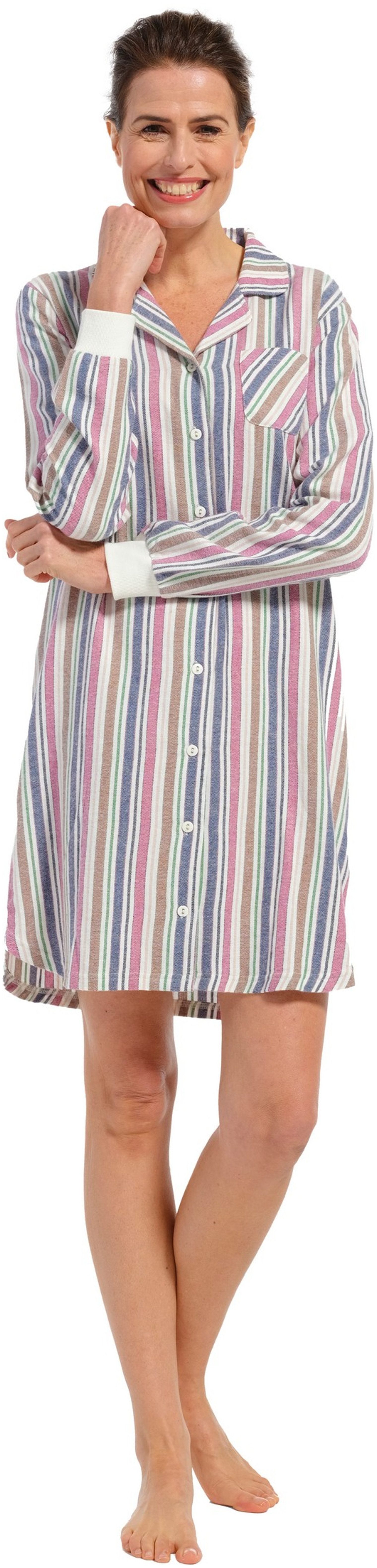 Dieses Pastunette Damen Nachthemd vereint Komfort und Funktionalität in einem ansprechenden Design. Hergestellt aus hochwertiger Baumwolle in Flanell-Qualität, bietet dieses Nachthemd ein angenehmes Tragegefühl und wärmeisolierende Eigenschaften. Das Nachthemd ist mit langen Ärmeln ausgestattet, die zusätzliche Wärme und Gemütlichkeit für kühlere Nächte bieten. Die Baumwolle verleiht dem Nachthemd eine weiche und angenehme Haptik auf der Haut. Ein herausragendes Merkmal dieses Nachthemdes ist die durchgehende Knopfleiste auf der Vorderseite. Die praktische Brusttasche auf der Vorderseite des Nachthemdes dient als dekoratives Detail. Insgesamt ist dieses Damen Nachthemd eine perfekte Wahl für Frauen, die nach einer Kombination aus Komfort und Nützlichkeit in ihrer Schlafbekleidung suchen. Die Verbindung von hochwertigen Materialien und praktischen Details macht dieses Nachthemd zu einer komfortablen und stilvollen Option für erholsame Nächte.