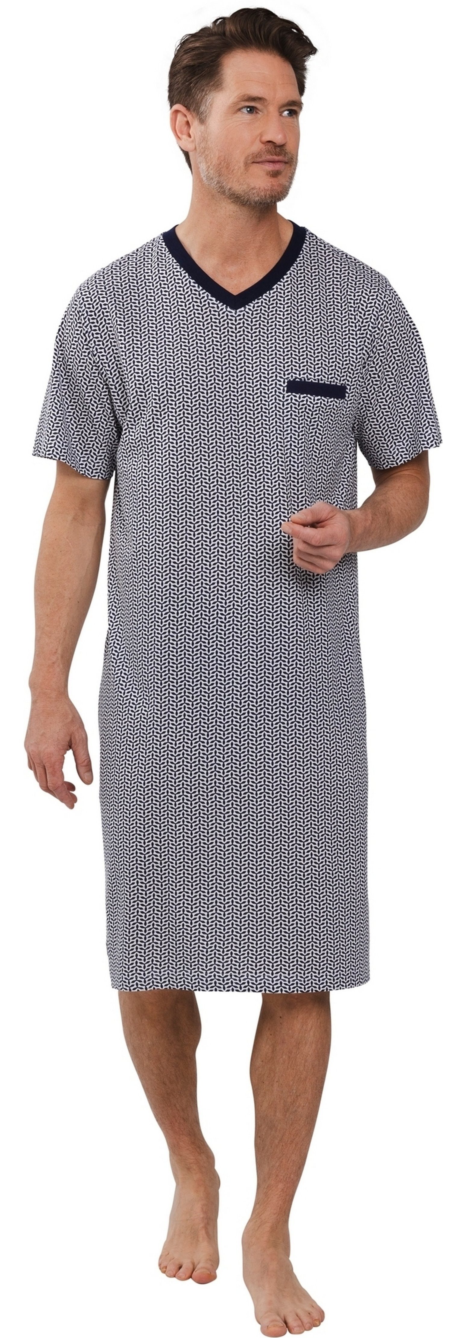 Dieses hochwertige Pastunette Herren-Nachthemd vereint erstklassigen Tragekomfort mit einem stilvollen Design und ist die perfekte Wahl für erholsame Nächte. Gefertigt aus einer weichen und atmungsaktiven Materialmischung aus 50 % Baumwolle und 50 % Modal, überzeugt es durch seine angenehm leichte Haptik und eine hervorragende Feuchtigkeitsregulierung. Die Kombination dieser Fasern sorgt für ein besonders geschmeidiges Tragegefühl auf der Haut und macht das Nachthemd zugleich pflegeleicht und formbeständig. Der elegante V-Ausschnitt verleiht dem Nachthemd eine moderne und maskuline Note, während die kurze Armform für zusätzliche Bewegungsfreiheit und eine angenehme Luftzirkulation sorgt ideal für wärmere Nächte. Eine praktische Brusttasche auf der linken Seite bietet einen stilvollen Akzent. Mit einer Длина von 105 cm sorgt das Nachthemd für ausreichend Bedeckung und ein rundum behagliches Gefühl. Ob zum Schlafen oder für entspannte Stunden zu Hause – dieses Herren-Nachthemd überzeugt durch seine hochwertige Verarbeitung, sein klassisches Design und ein unvergleichlich angenehmes Tragegefühl.
