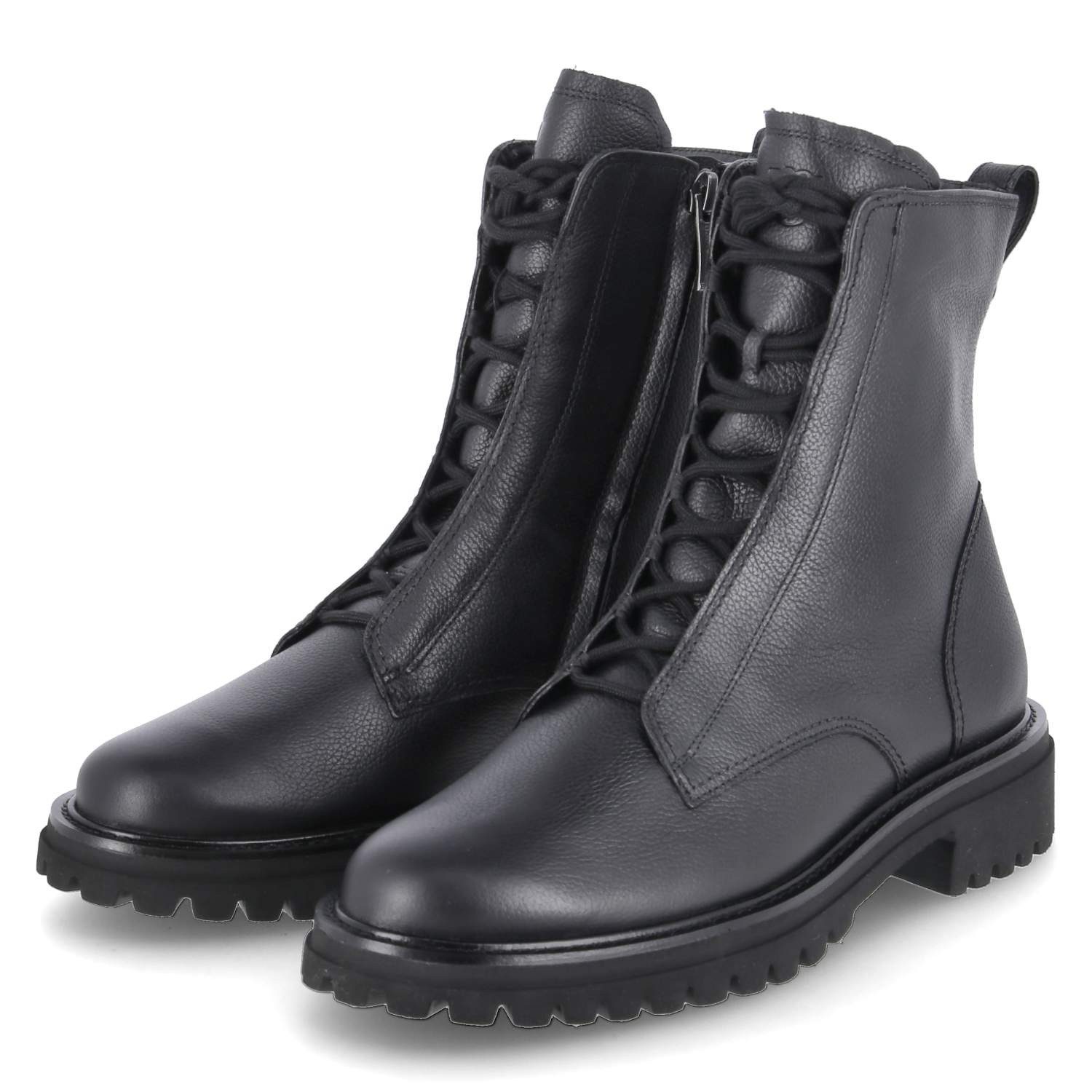 Die schwarzen Paul Green Damen Schnürstiefeletten aus Glattleder vereinen Komfort und Stil in einem leichten Design. Mit einer Kombination aus Schnürung und Reißverschluss bieten diese Combat Boots eine flexible Passform sowie ein einfaches An- und Ausziehen.