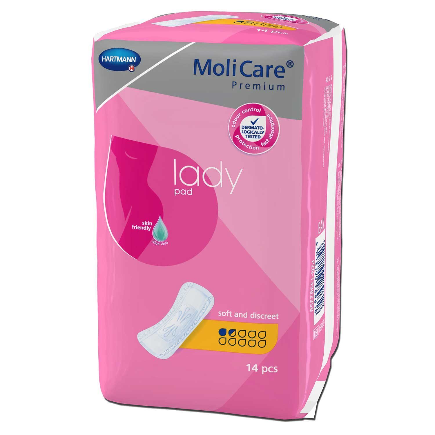 Die MoliCare® Premium Lady Pad mit einer Saugstärke von 1,5 Tropfen ist eine diskrete und komfortable Inkontinenzeinlage für Frauen, die bei leichter bis mittlerer Blasenschwäche einen verlässlichen Schutz suchen. In dieser Packung sind 14 Einlagen enthalten, die ideal für gelegentlichen Urinverlust sind, wie er zum Beispiel bei leichter Belastungsinkontinenz auftritt.