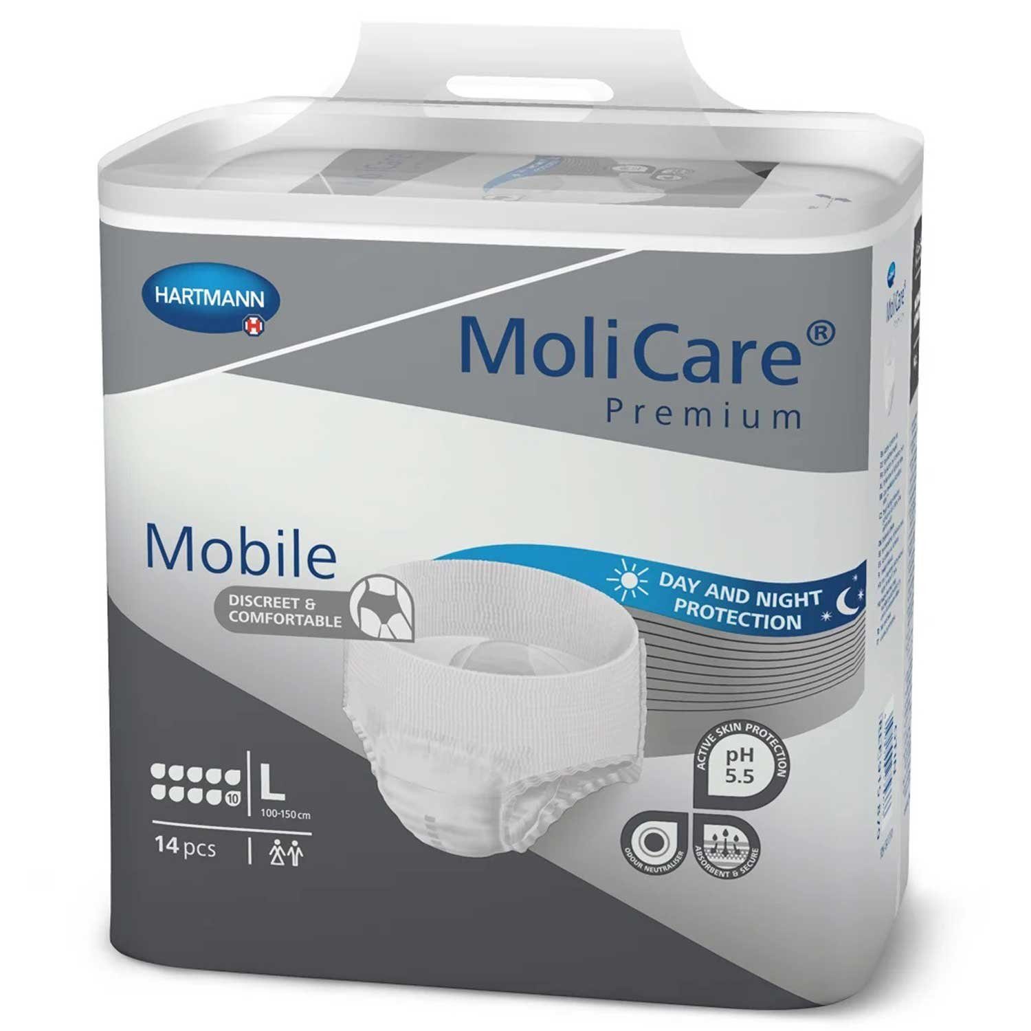 Die MoliCare® Premium Mobile 10 Tropfen in der Размер L ist eine hochsaugfähige Inkontinenzhose, die speziell für Menschen mit schwerer Blasenschwäche entwickelt wurde. In dieser Варианты erhalten Sie 4 Packungen mit jeweils 14 Hosen, was insgesamt 56 Hosen ergibt.
