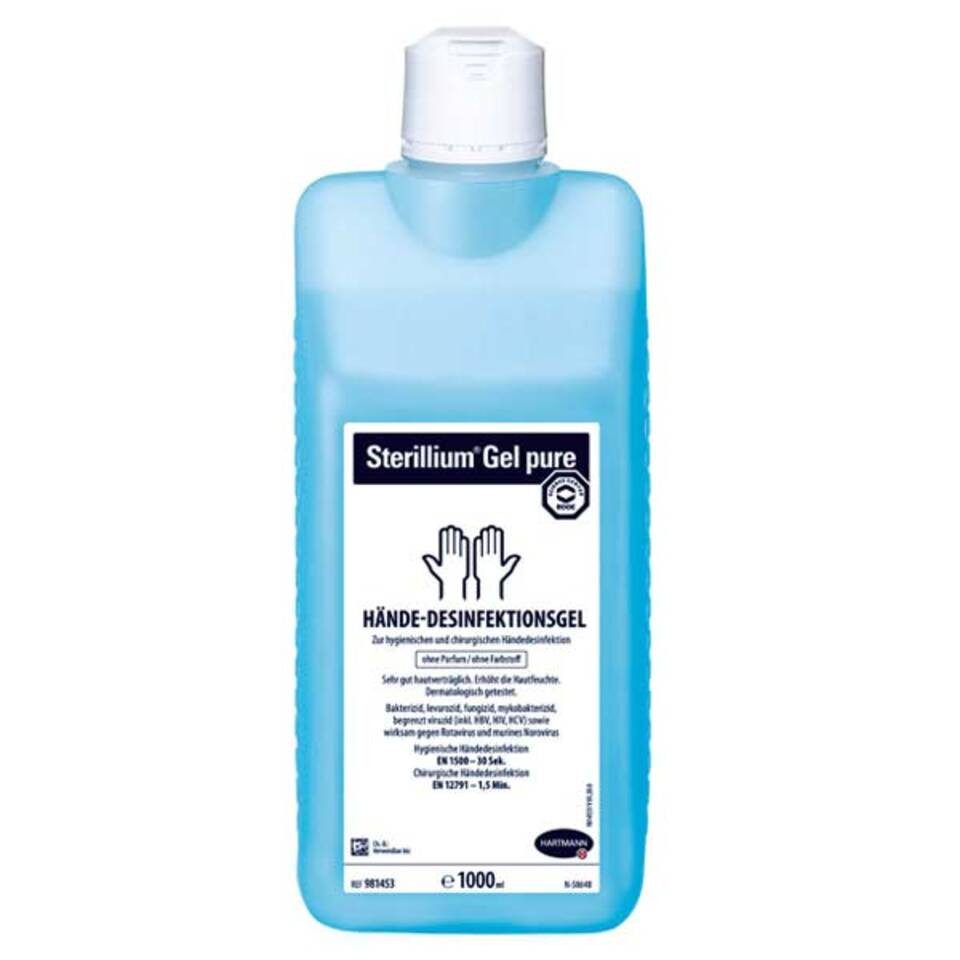 Sterillium® Gel pure in der 1 Liter Flasche bietet einen gelartigen Schutz gegen Bakterien und Viren. Es ist hautfreundlich, hinterlässt keine Rückstände und ist ideal für den Einsatz in hygienisch sensiblen Bereichen.