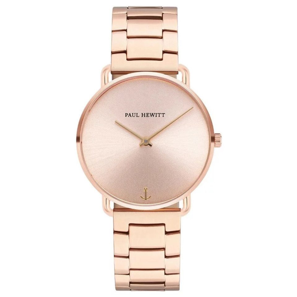 Das roséfarbene Zifferblatt wurde mit abgestimmten Zeigern und zwei Hilfszifferblätter ausgestattet. Die wundervolle Optik wird durch das roségoldfarbende strapazierfähige Edelstahlarmband abgerundet.