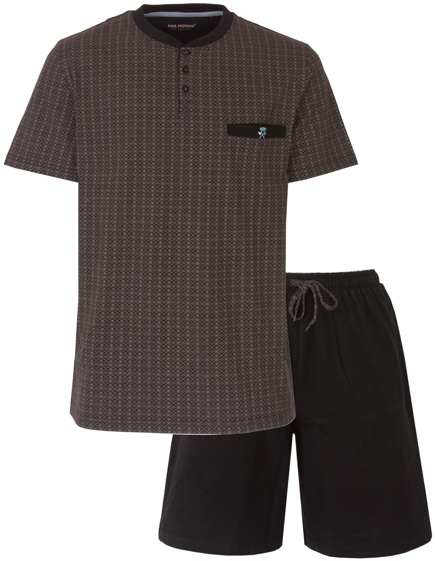 Der Paul Hopkins Herren Schlafanzug ist eine komfortable Schlafbekleidung, die aus 100% Baumwolle gefertigt ist. Der Rundhals-Ausschnitt ist mit einer Knopfleiste versehen, die nicht nur einen ansprechenden Look bietet, sondern auch eine praktische Möglichkeit zum Anpassen der Belüftung während des Schlafens darstellt. Der Shorty verfügt über kurze Ärmel, die eine angenehme Bewegungsfreiheit gewährleisten. Die kurze Hose ist am Bund mit einem elastischen Gummizug ausgestattet, der für einen bequemen Sitz sorgt. Zusätzlich ermöglicht ein Tunnelzug die individuelle Anpassung der Ширина пояса nach persönlichem Komfort. Praktisch und stilvoll ist die Brusttasche auf der linken Seite des Schlafanzugs platziert. Insgesamt ist dieser Herren Schlafanzug Shorty eine ideale Wahl für warme Nächte, da er mit seinem kurzärmligen Oberteil und der kurzen Hose für eine optimale Belüftung und Bequemlichkeit sorgt. Das hochwertige Material aus reiner Baumwolle trägt dazu bei, ein angenehmes Schlafklima zu schaffen.