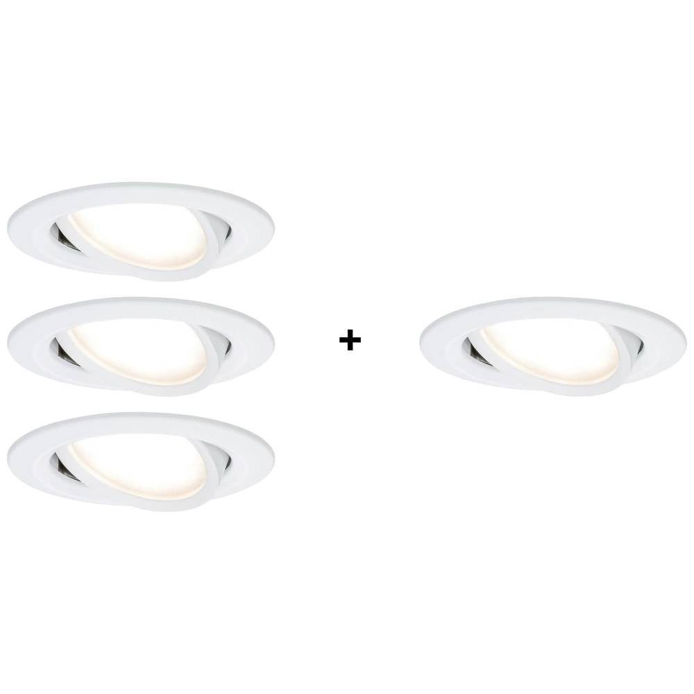 Eigenschaften | 2021 Energieeffizienzklasse: n.rel · Abstrahlwinkel: 110 ° · Anzahl Leuchtmittel: 4 · Außen-Durchmesser: 84 mm · Bauform (Leuchten): Rund · Betriebsspannung: 230 V · Einbau-Durchmesser: 68 mm · Einbautiefe: 45 mm · Herstellerfarbe: Weiß (matt) · Lampen-Besonderheiten: Dimmbar über Lichtschalter, Schwenkbar, Geringe Einbautiefe · Leistung: 24 W · Leistung je Leuchtmittel: 6 W · Leuchtfarben: Warmweiß · Leuchtmittel enthalten: Ja · Leuchtmittel-Typ: LED · Lichtfarbe: 2700 K · Lichtstrom Gesamt: 1880 lm · Lichtstrom pro Lichtquelle (Lumen): 470 lm · Material: Aluminium · Produktabmessung, Ø: 84 mm · Raum (Lampen): Wohn-/Esszimmer, Schlafzimmer, Küche, Arbeitszimmer, Industrie/Gewerbe · Schutzart: IP23 · Schutzglas: satiniert · Schutzklasse: II · Schwenkbereich max.: 50 ° · Sockel: LED · Stil (Lampen): Modern/Design, Junges Wohnen |