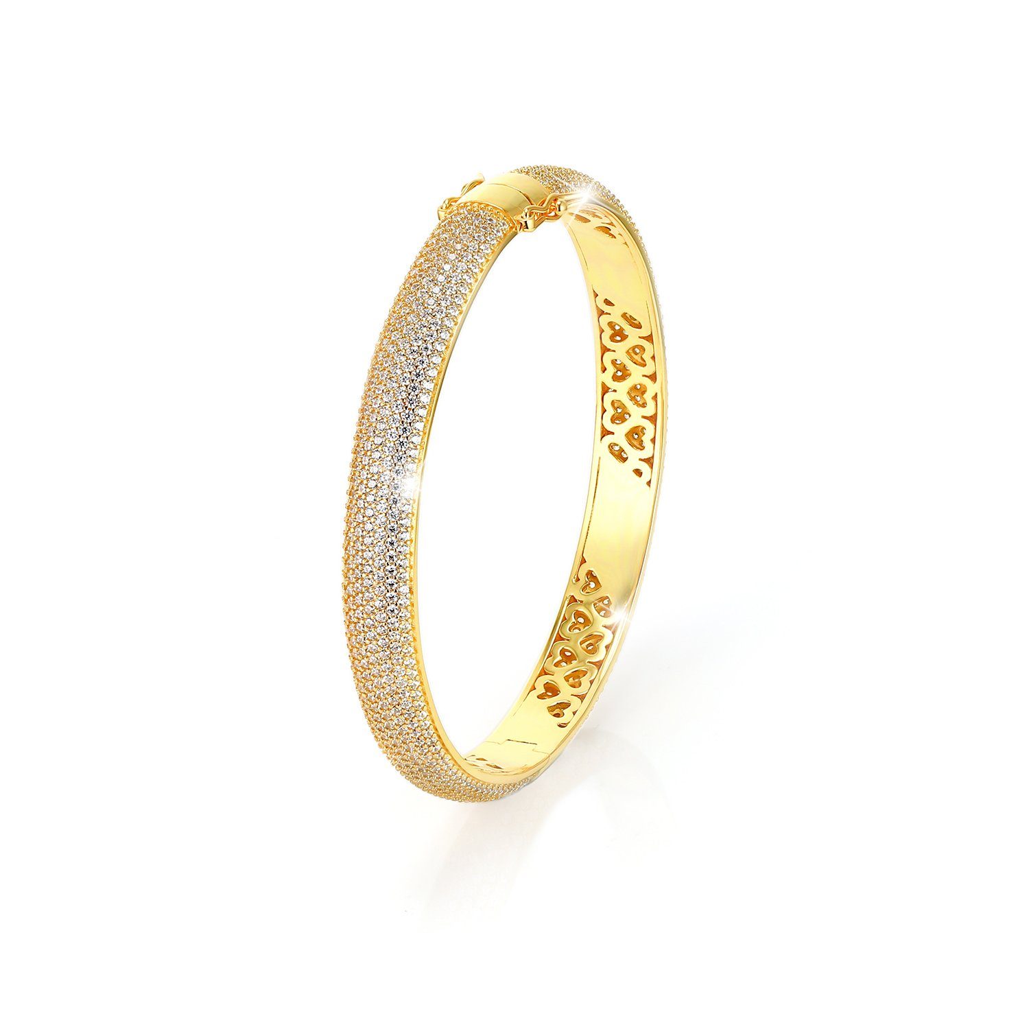 Der Armreifen besticht durch sein frisches Design mit zahlreichen farbigen Zirkonia in 5A Qualität. Besonders hervorzuheben ist die Liebe zum Detail, mit welcher er gefertigt wurde. Die Innenseite besteht aus zahlreichen kleinen Herzchen. Der Armreif lässt sich öffnen und ist mit Hilfe einer Feder-Clip Technik verschließbar. Zum besseren Halt wird er anhand von zwei kleinen Seitenspangen fixiert. Der PAVELS Armreifen "Shine" ist ein elegantes Schmuckstück, das in zwei Вариантыn erhältlich ist: Gold und Silber. Gefertigt aus hochwertigem 925er Silber, ist der Armreifen mit einer 18-Karat-Goldplattierung versehen, die ihm einen warmen Glanz verleiht. Die Oberfläche des Armreifens ist mit funkelnden Zirkonia-Steinen besetzt, die für ein strahlendes Erscheinungsbild sorgen. Mit einem Durchmesser von etwa 65 mm und einem Gewicht von ca. 29 Gramm liegt der Armreifen angenehm am Handgelenk. Die Feder-Clip-Öffnung mit zwei Seitenspangen ermöglicht ein einfaches An- und Ablegen des Schmucks. Dieser Armreifen eignet sich hervorragend als Geschenk für besondere Anlässe oder als stilvolles Accessoire für den Alltag. Geliefert wird er in einer hochwertigen PAVELS Schmuckbox, zusammen mit einem Glanzbeutel, einem Schmuckreinigungstuch und einem Echtheitszertifikat. Verleihen Sie Ihrem Look mit dem Armreifen "Shine" eine elegante und funkelnde Note. Kombinierbar mit den passenden Creolen aus unserer „Shine“ Schmuckkollektion.