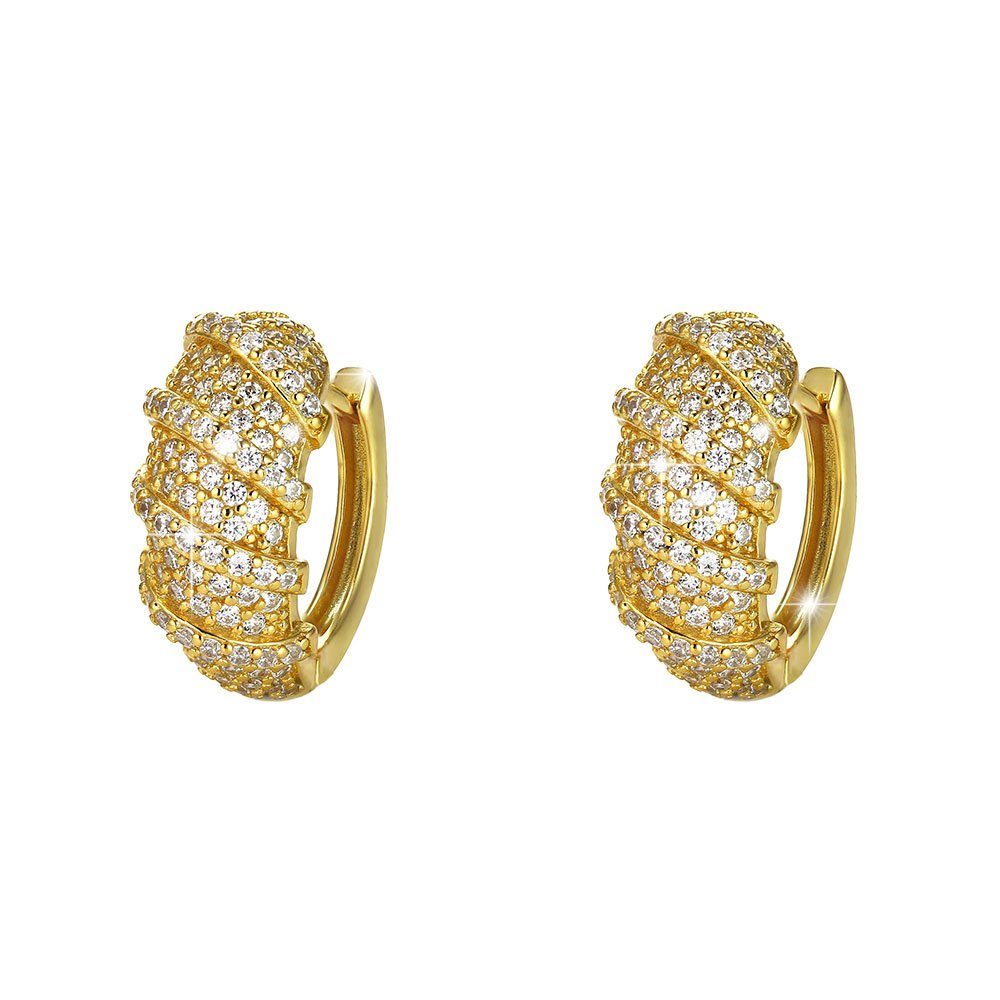 Eigenschaften Ohrschmuck | beidseitig tragbar, 925 Sterlingsilber, Rhodiniert, wahlweise 18K Goldplattiert, 5A Zirkonia, Schnappverschluss, hypoallergen |