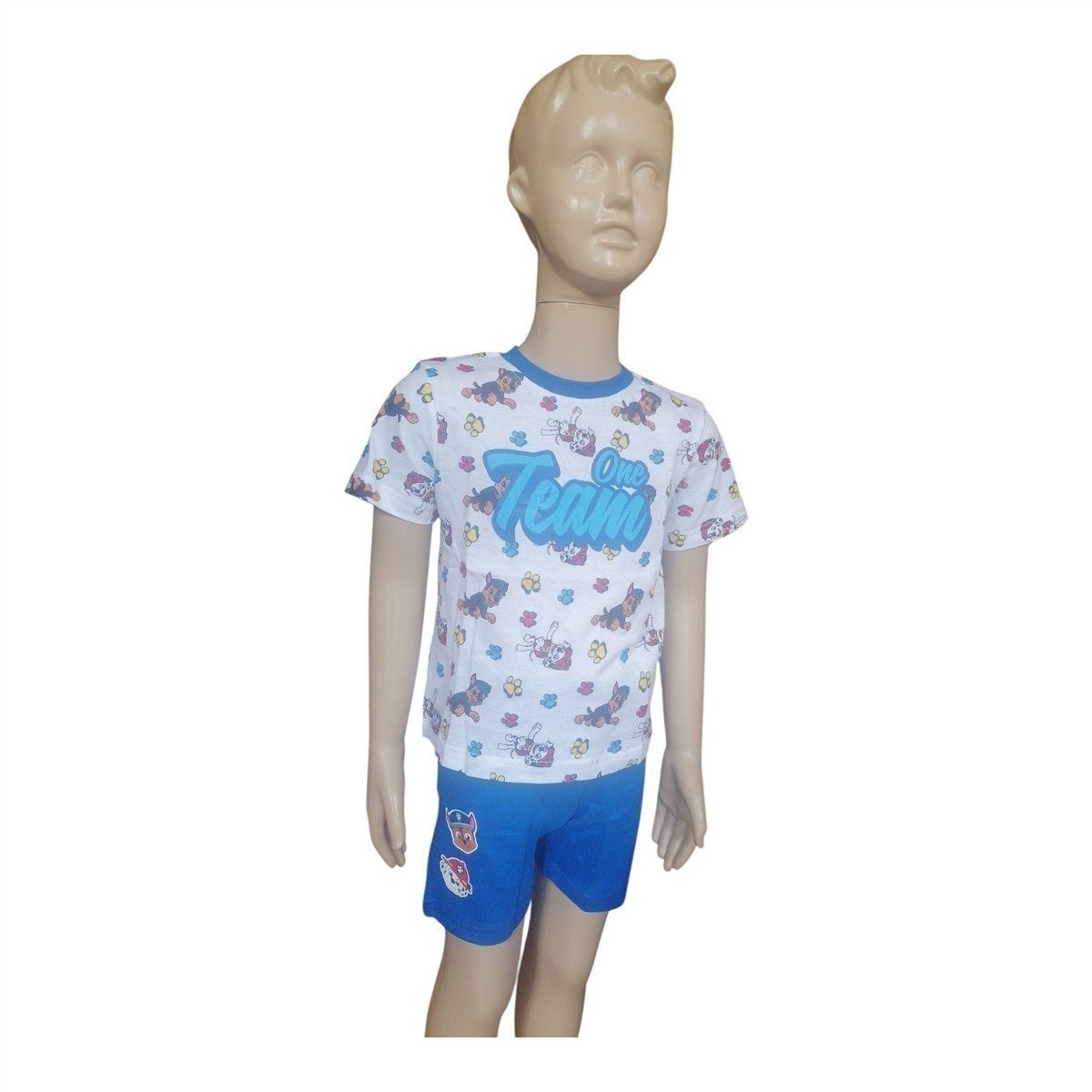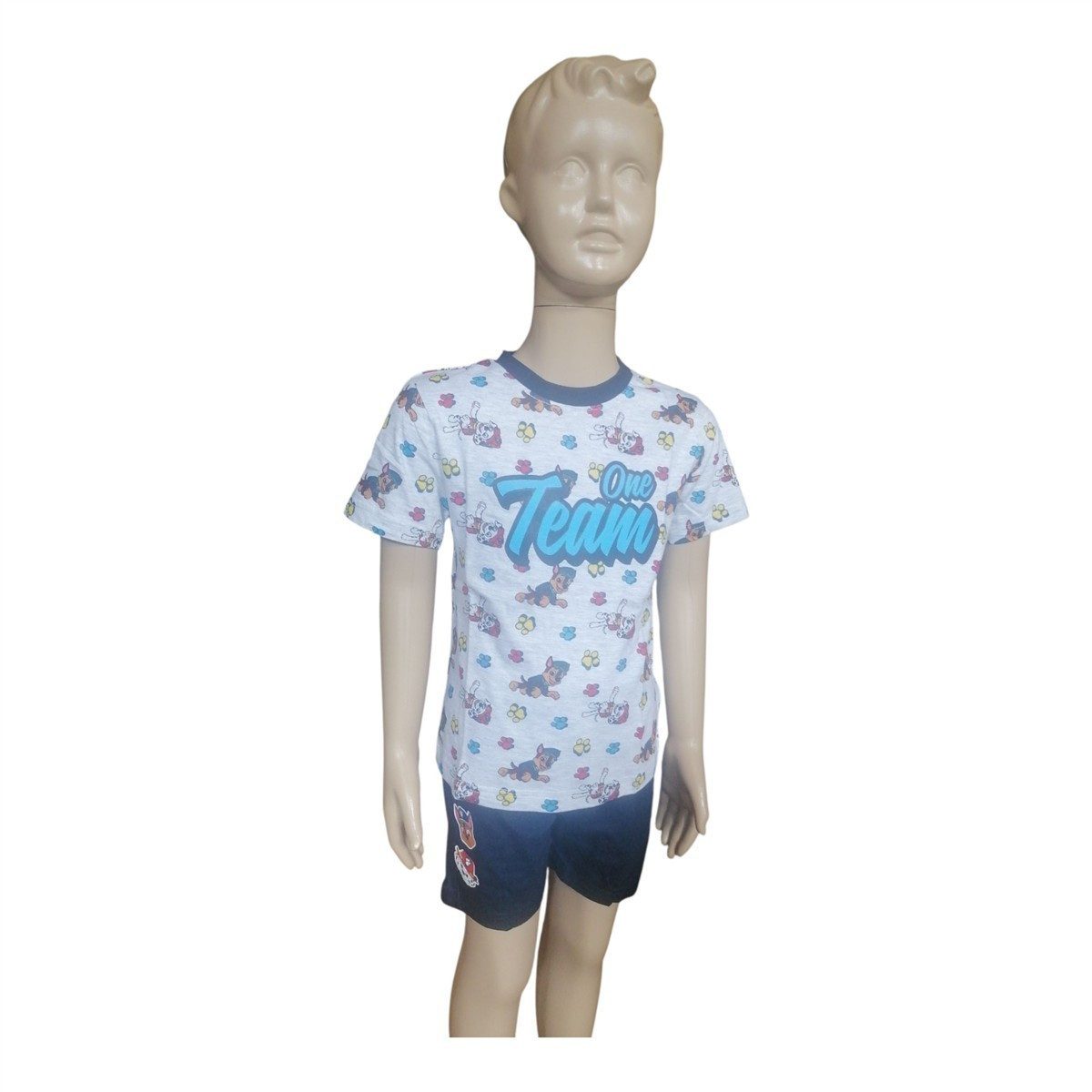 Träumen wie echte Helfer auf vier Pfoten: Dieser leichte Paw-Patrol Kurz-Pyjama bringt Chase & Marshall als fröhlichen Frontprint auf ein weiches Kurzarmshirt. Dazu gibt es wahlweise dunkelblaue oder schwarze Shorts – beide aus atmungsaktiver Baumwolle, damit kleine Abenteurer auch an warmen Nächten cool bleiben.