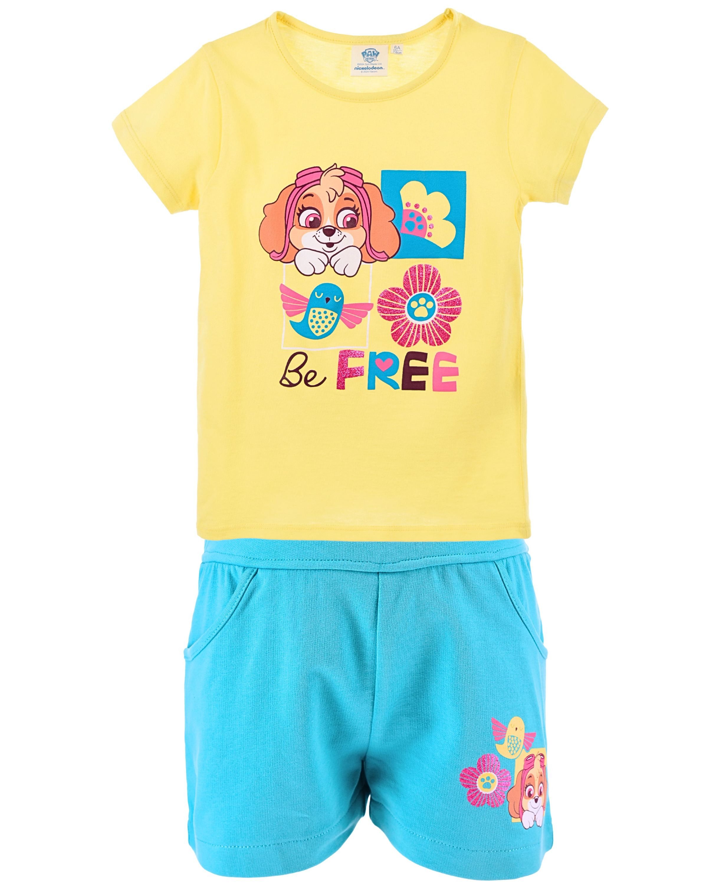 Das zweiteilige Set, inspiriert von der charmanten Skye aus der PAW Patrol, begeistert mit einem niedlichen T-Shirt und Shorts. Das T-Shirt zeigt einen süßen Skye-Druck, begleitet von sommerlichen Motiven und dem inspirierenden Schriftzug "be free". Die Shorts ergänzen das Design mit einem passenden Druck am linken Hosenbein und bieten gleichzeitig einen bequemen Sitz dank des elastischen Bundes und der praktischen Taschen. Kleine Mädchen werden sich in diesem verspielten Outfit frei und begeistert fühlen.
